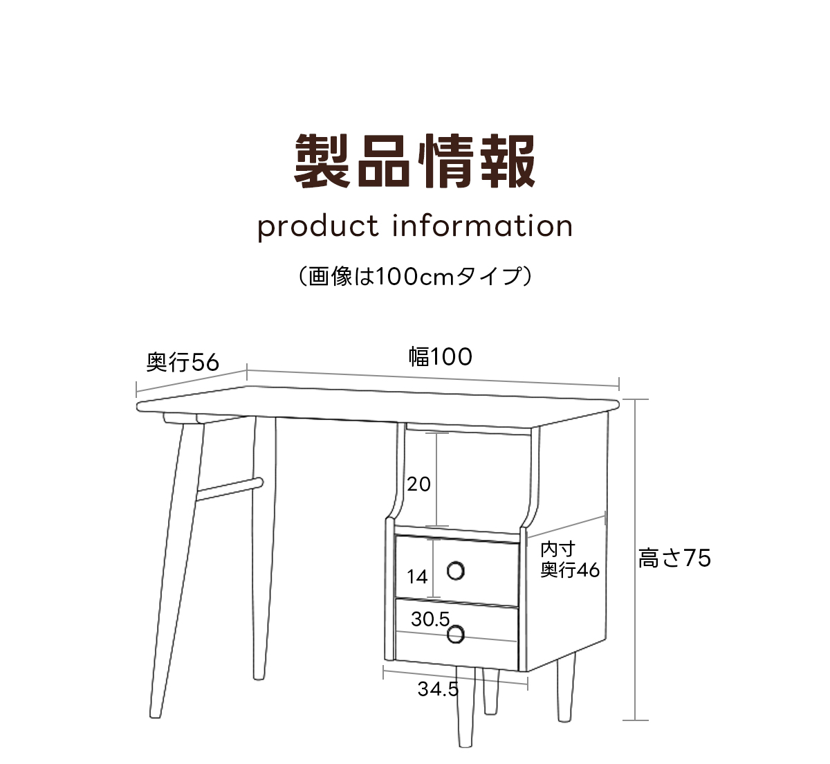 - 【優れた設計と品質】:デスクのサイズは幅100/120cm、奥行き56cm、高さ75cmで、テーパードレッグを採用し、しっかりとした安定感を提供します。