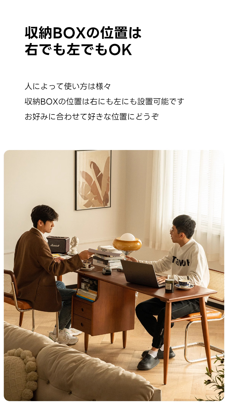 - 【広々とした作業スペースと収納力】幅120cm、奥行き56cmの広々とした作業スペースを提供し、仕事や勉強が快適に行えます。2つの引き出しと1つのオープンスペースを備え、よく使うアイテムをすっきりと整理整頓できます。収納ボックスは左右どちらにも設置可能で、使い勝手の良さが魅力です。