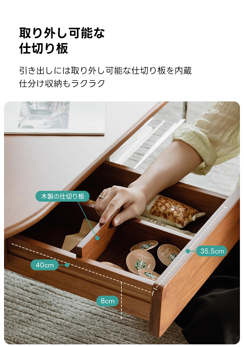 - 【多機能なセンターテーブル】:このセンターテーブルは、引き出しとオープンスタイルのステンレス収納が付いており、収納力に優れています。ハンドルレスの引き出しはスムーズに開閉でき、調整可能な仕切りで整理整頓が簡単です。