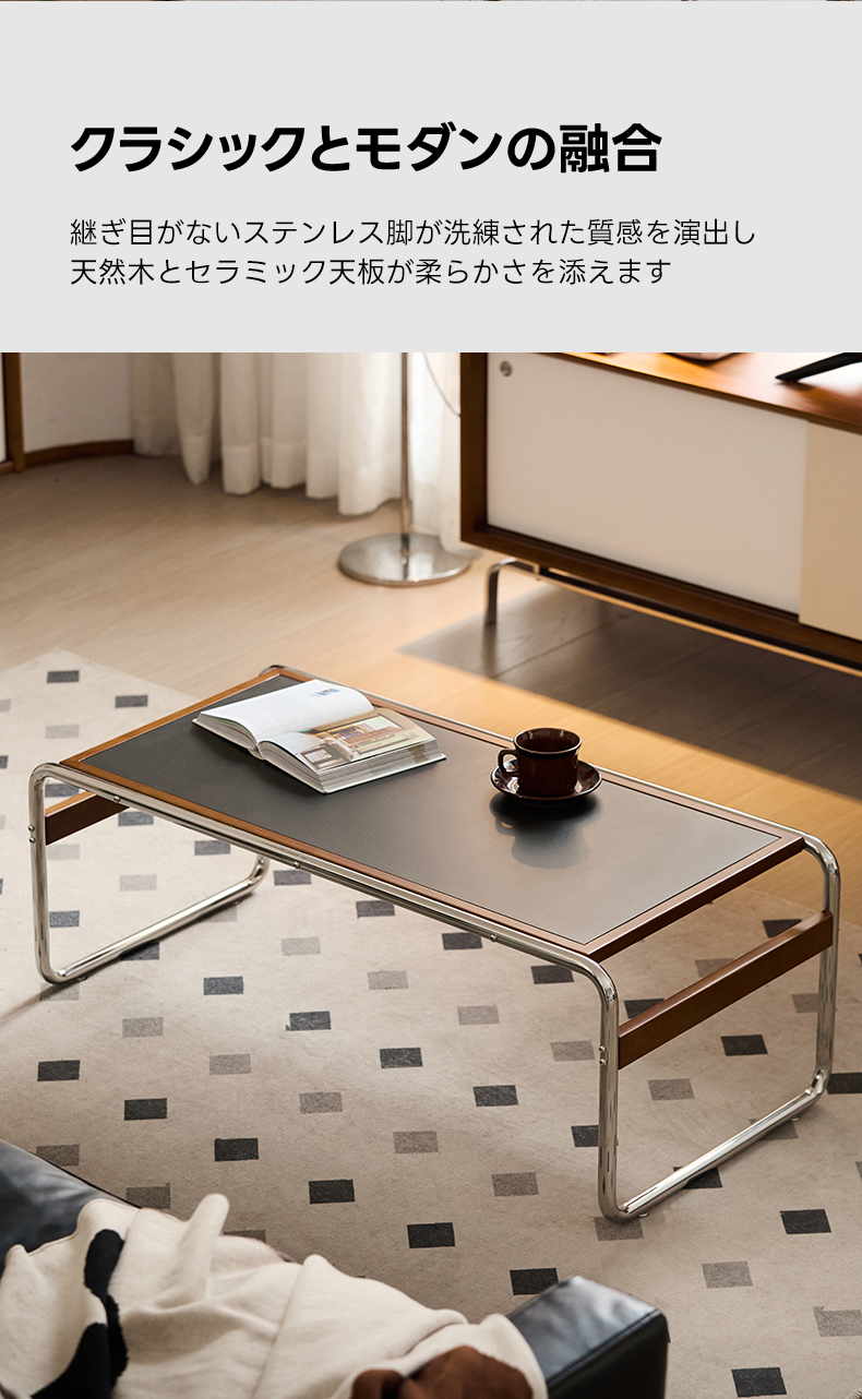- 【高級感のある素材とデザイン】:FASグレードの北米産ツゲ材を使用し、耐久性と美しさを兼ね備えています。セラミック天板は耐熱性、耐汚性に優れ、直接食品を置いても安全です。ヴィンテージ感とモダンな要素を兼ね備えたデザインが、リビングルームの雰囲気を格上げします。