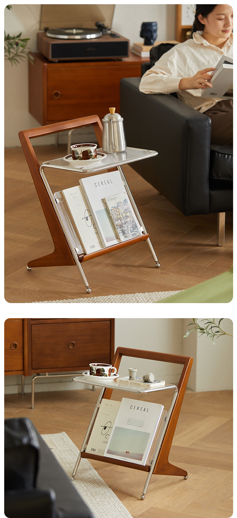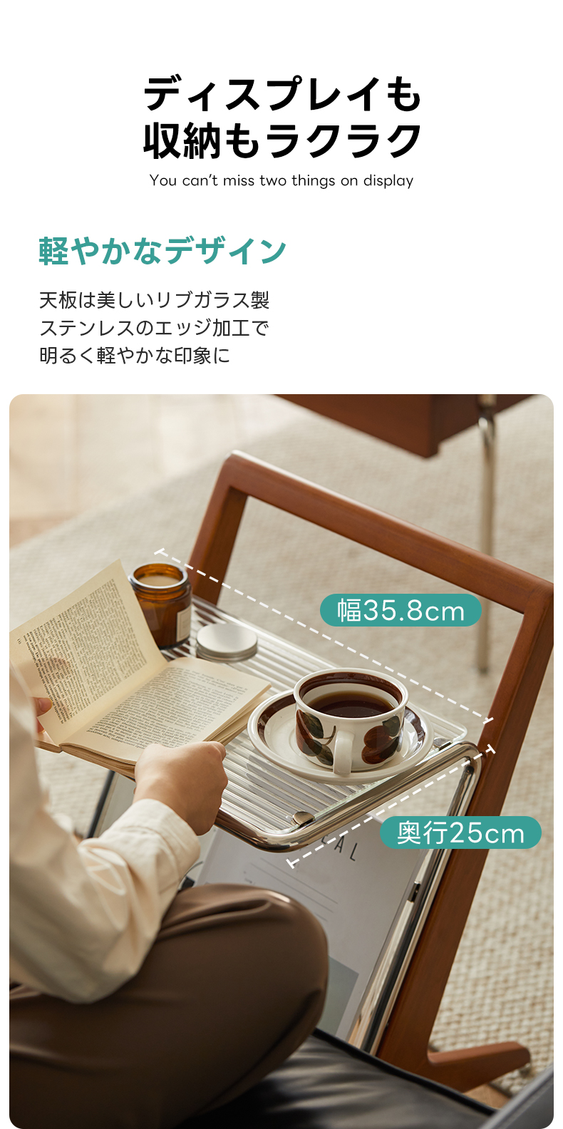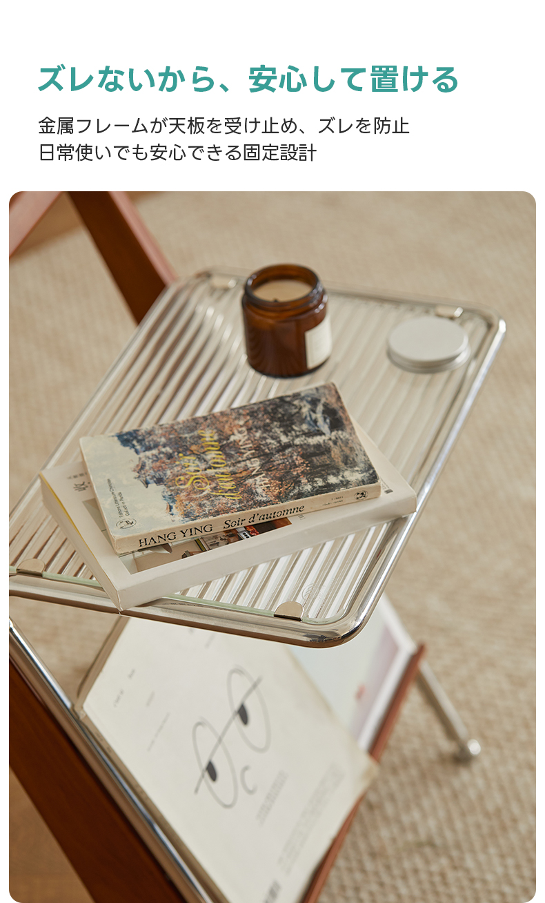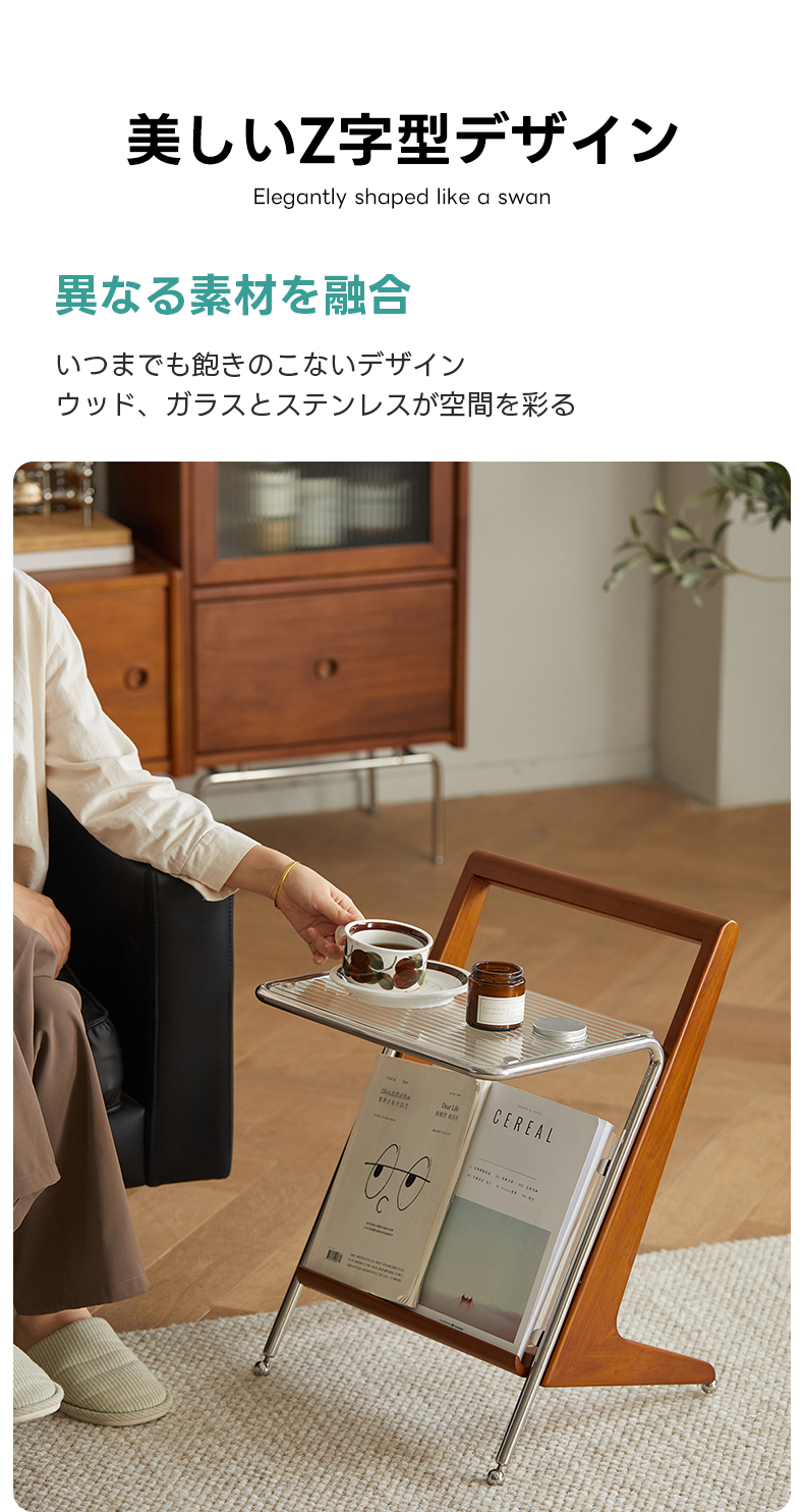 - 【多機能なサイドテーブル】このZ字型ガラスサイドテーブルは、リビングや寝室に最適です。上部はリブガラスを使用し、ステンレススチールで縁取られたデザインで、明るく透明感のある効果を実現します。下部には雑誌や本を収納できるスペースを備え、取り出しやすさと展示の美しさを兼ね備えています。