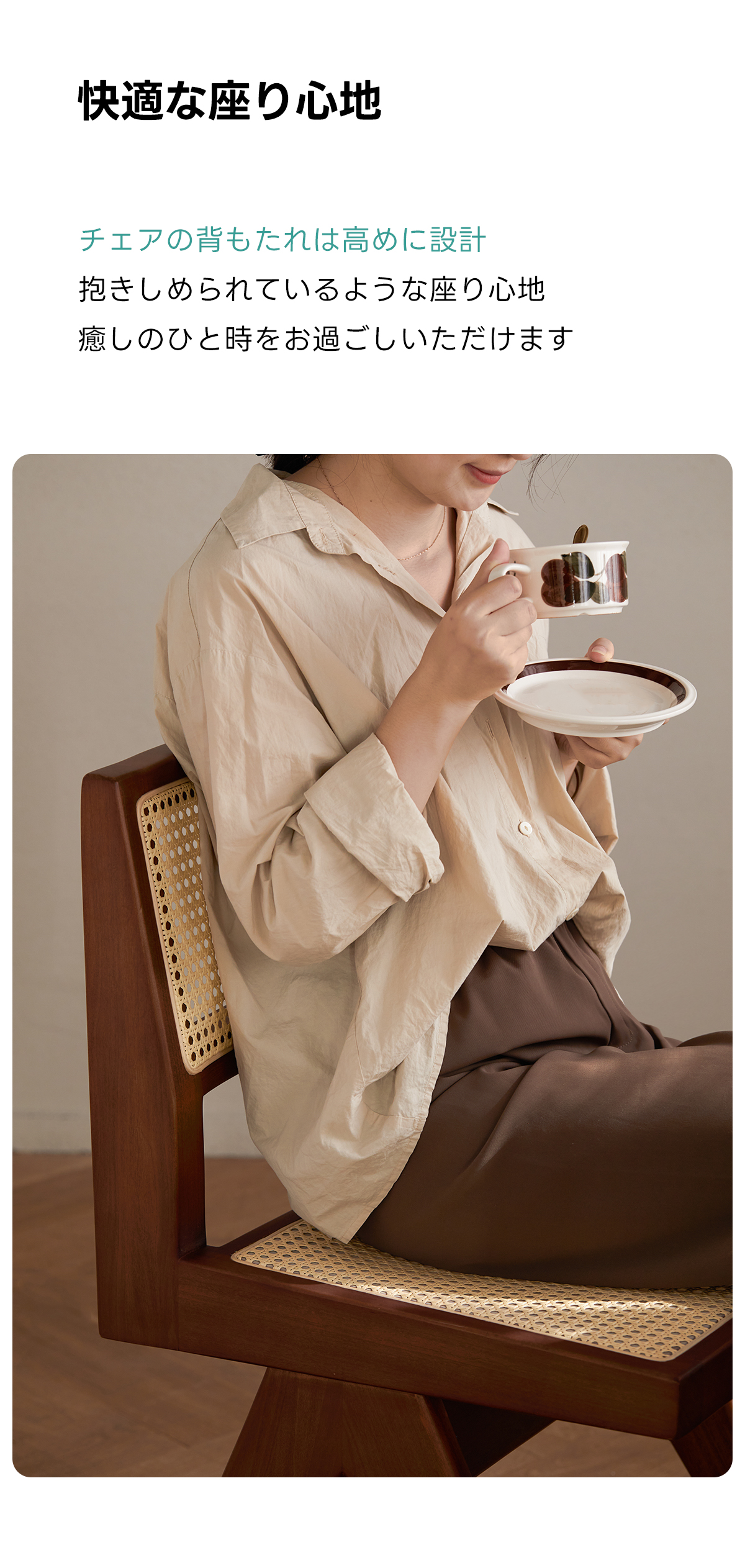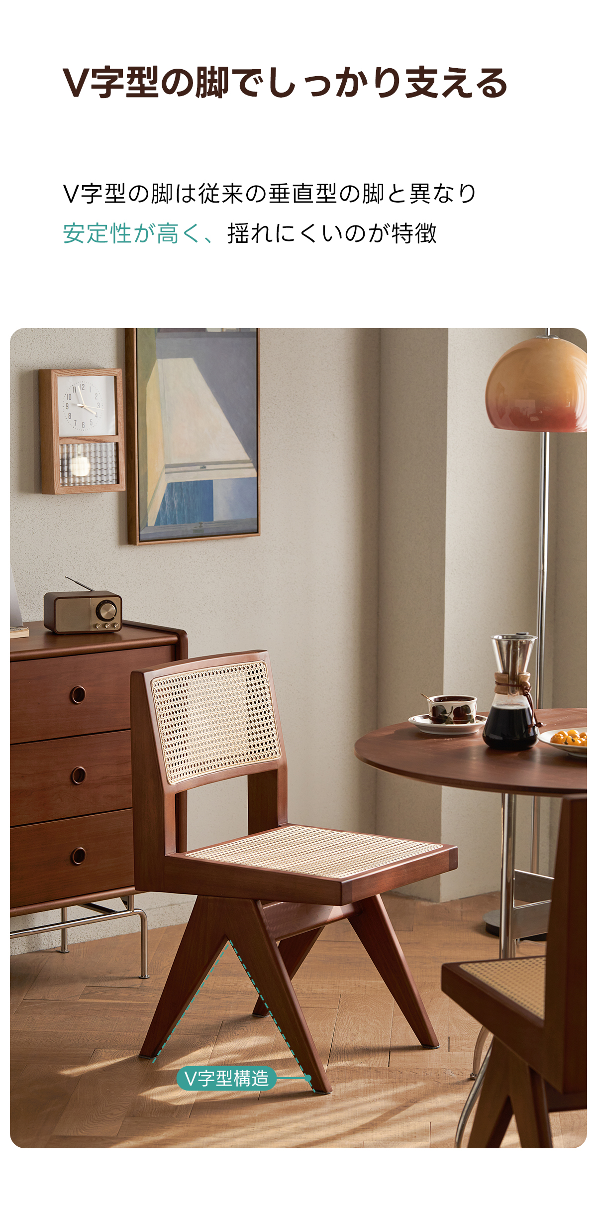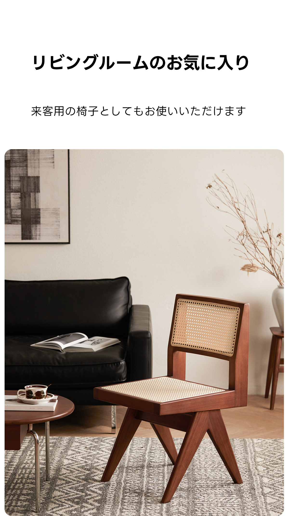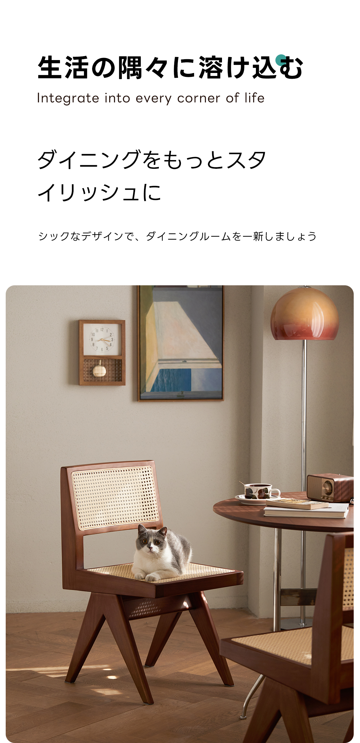 - 【優雅なヴィンテージデザイン】:北米産の高級ツゲ材を使用したラタン調ダイニングチェアは、ヴィンテージ感漂うデザインが特徴です。どんなインテリアにもマッチし、リビングやダイニングに優雅な雰囲気を演出します。