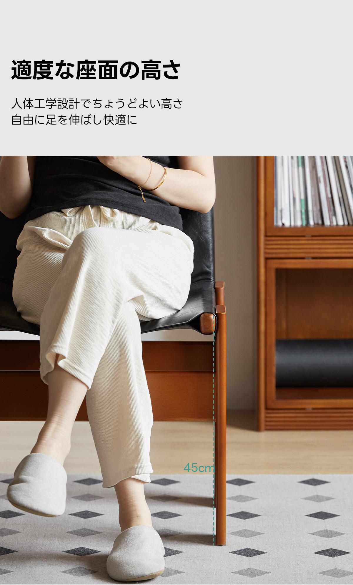 - 【高品質な素材と洗練されたデザイン】:ツゲ材のフレームは耐久性が高く、オイルワックスレザーとの組み合わせが洗練された雰囲気を演出します。自然なカーブが体にフィットし、長時間座っても疲れにくい設計です。
