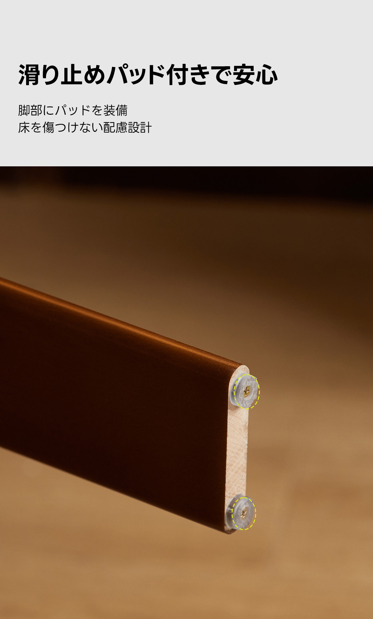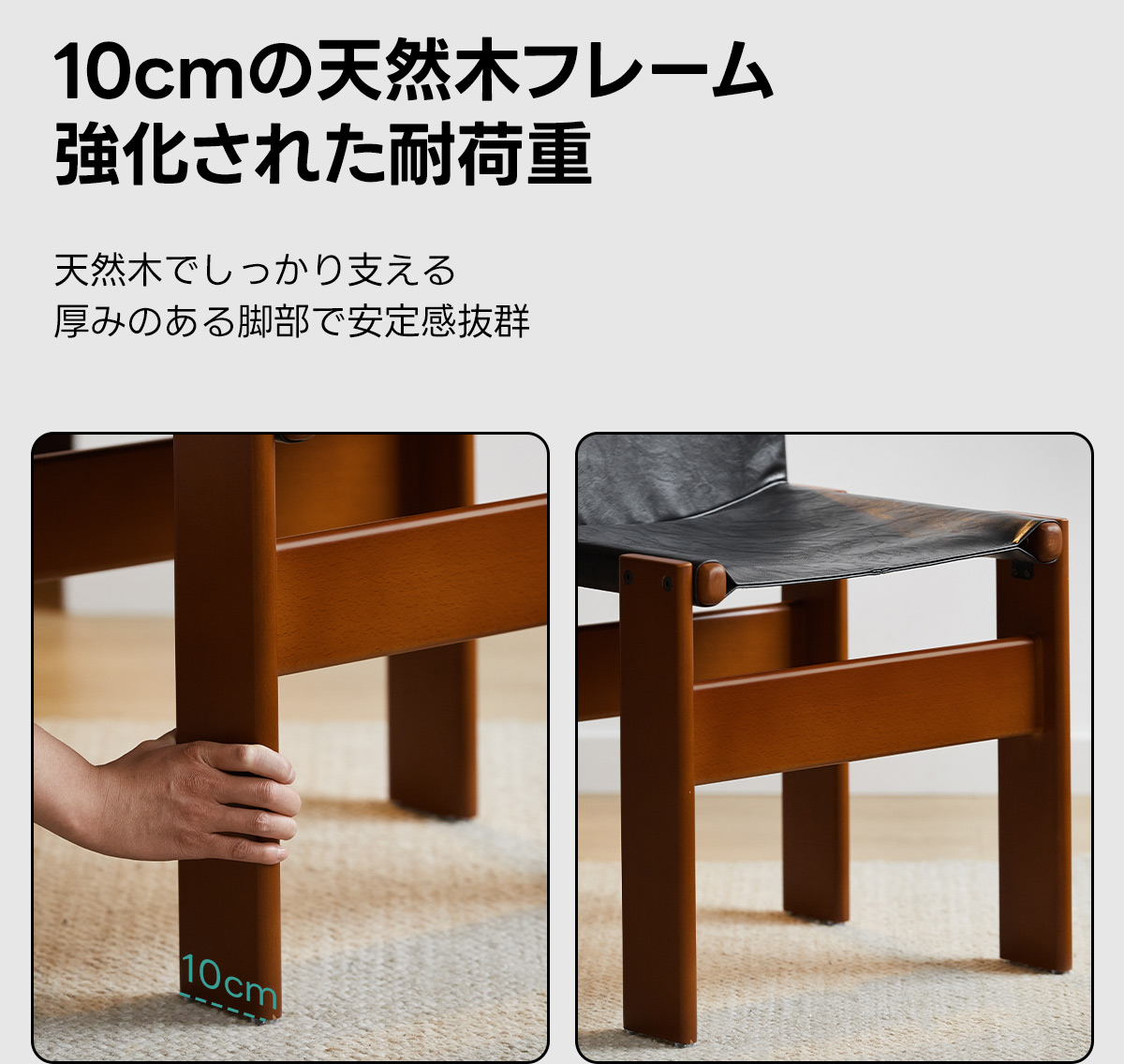 - 【長持ちする耐久性と安定性】:10cmの厚みのある天然木フレームと高品質な金具でしっかり固定されており、長期間使用してもへたりにくい設計です。滑り止めパッド付きで、床を傷つける心配もありません。