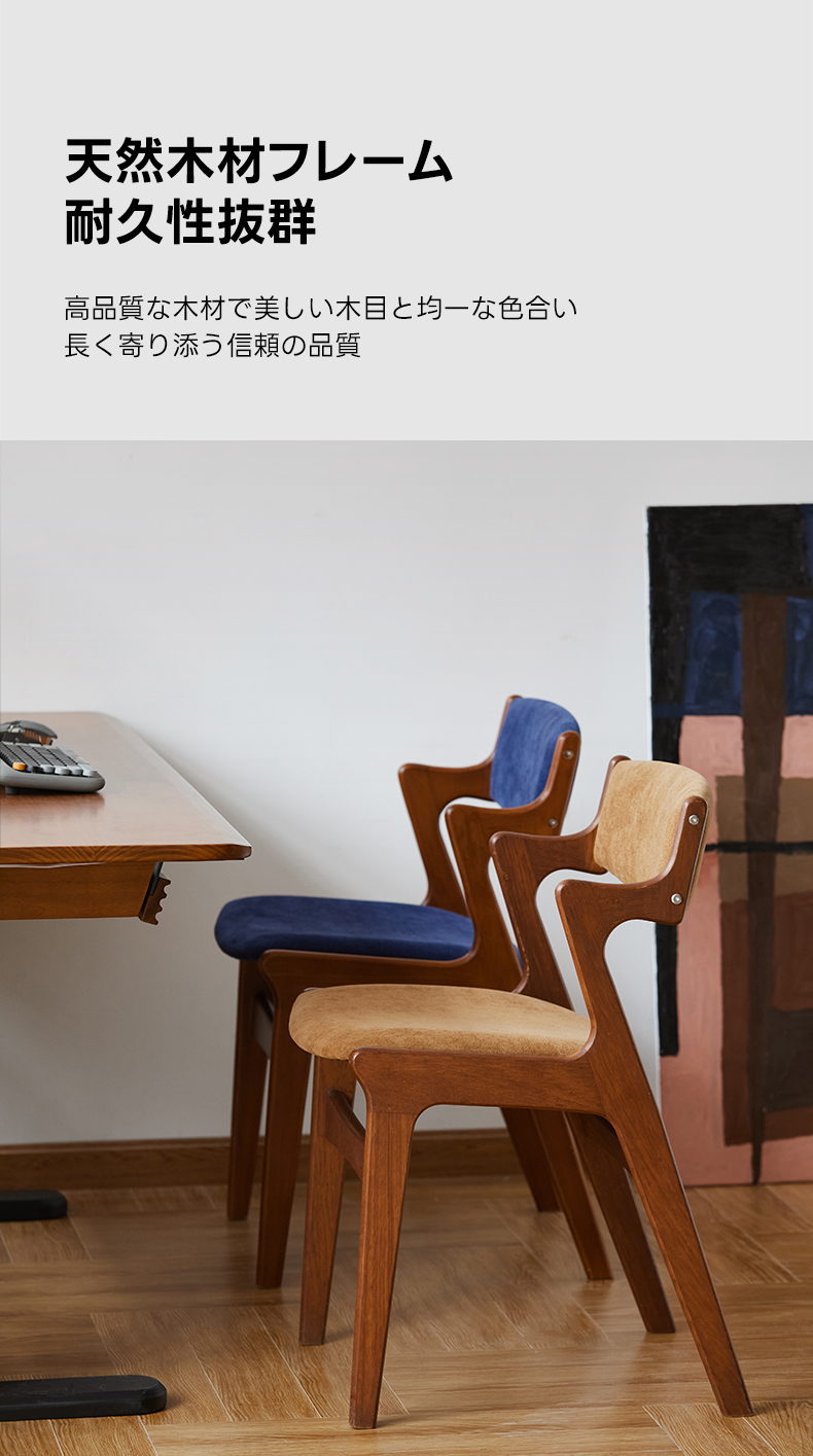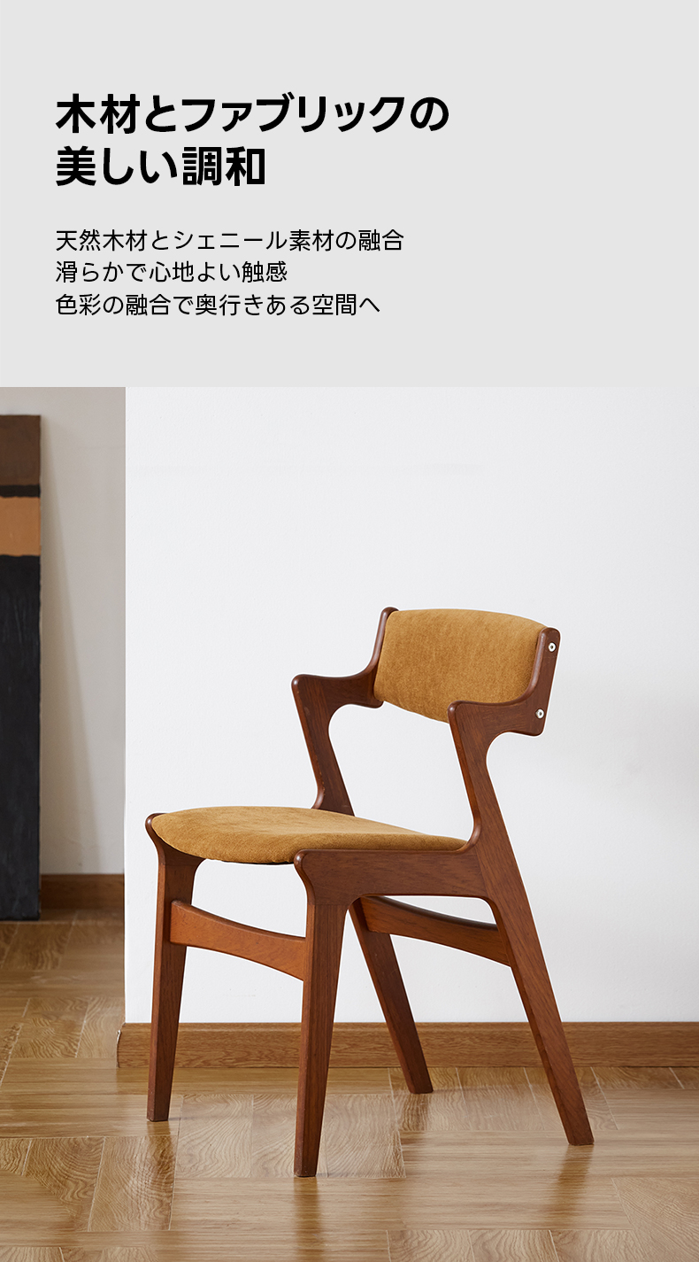 - 【高品質な素材とデザイン】:ツゲ材のフレームは北米産のFAS級素材を使用し、耐久性と美しい木目が特徴です。シェニール生地の座面と背もたれは肌に優しく、柔らかな触感を提供します。
