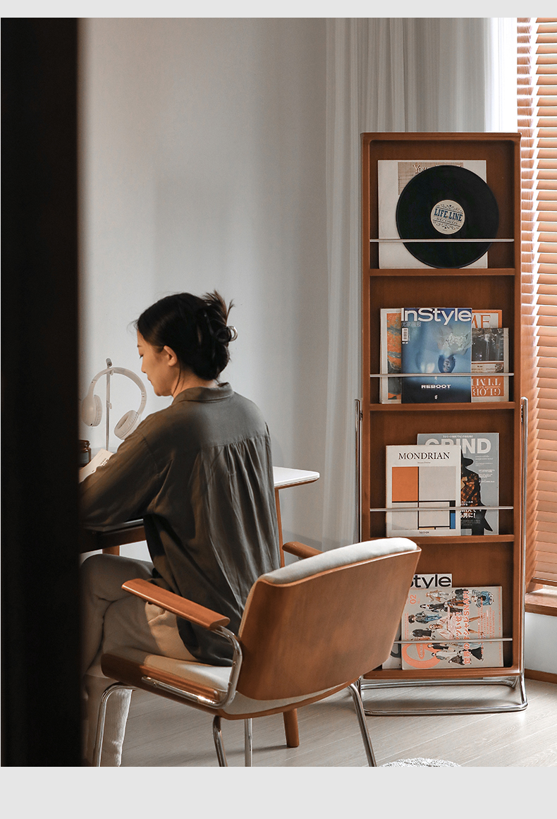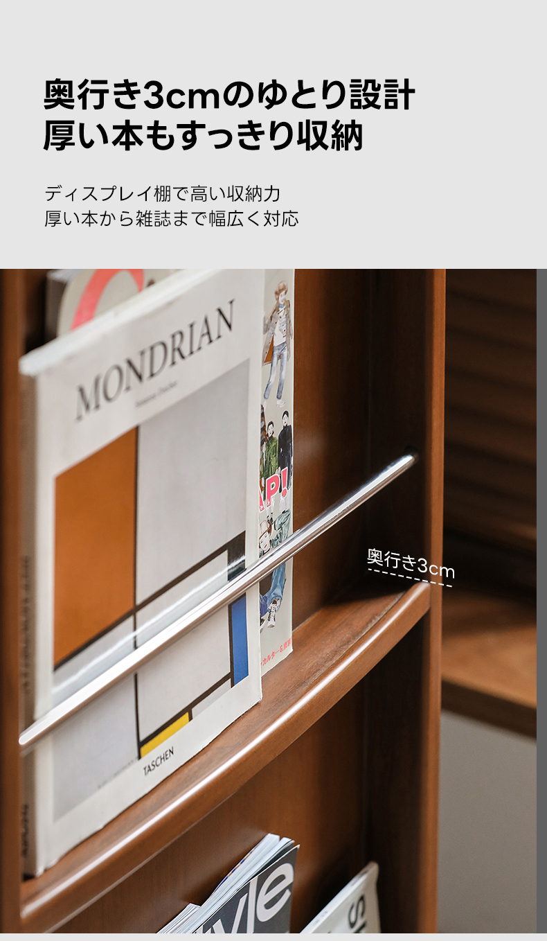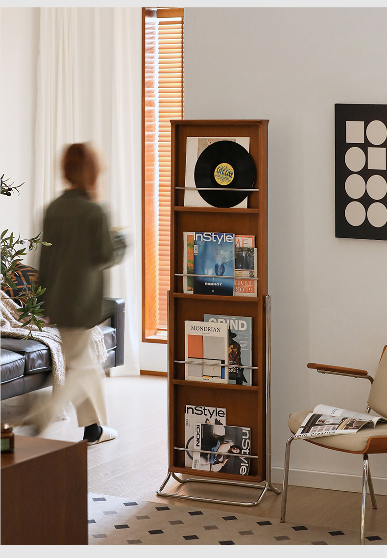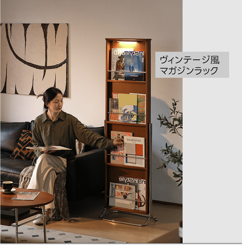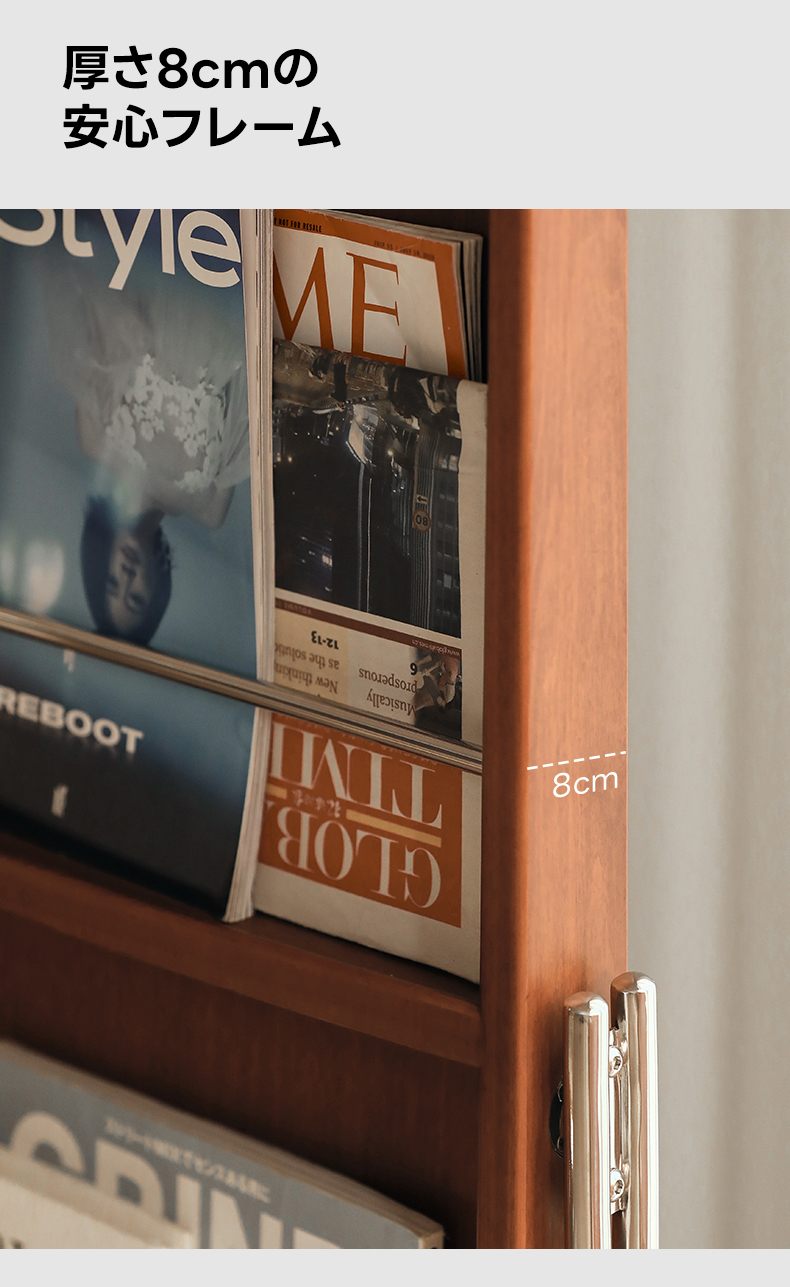 - 【多機能で便利なデザイン】両面使用可能な設計で、表面は全身ミラー、裏面は4段式のマガジンラックとして利用可能です。雑誌やレコードの収納に便利で、リビングや寝室、玄関など様々な場所にフィットします。