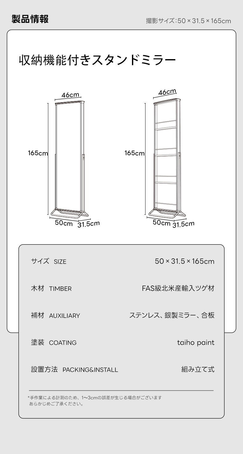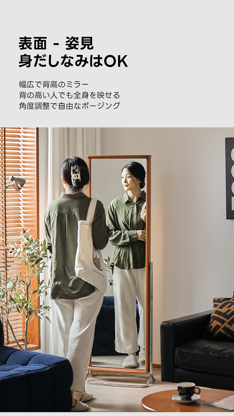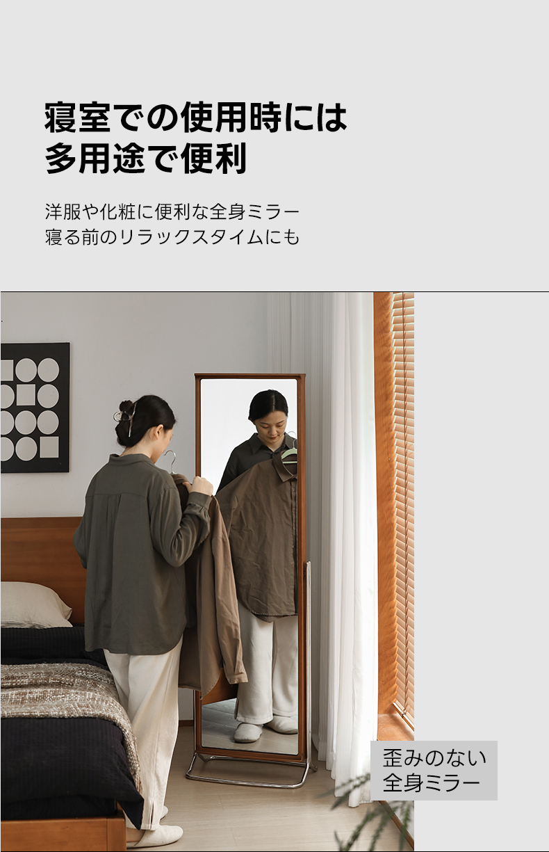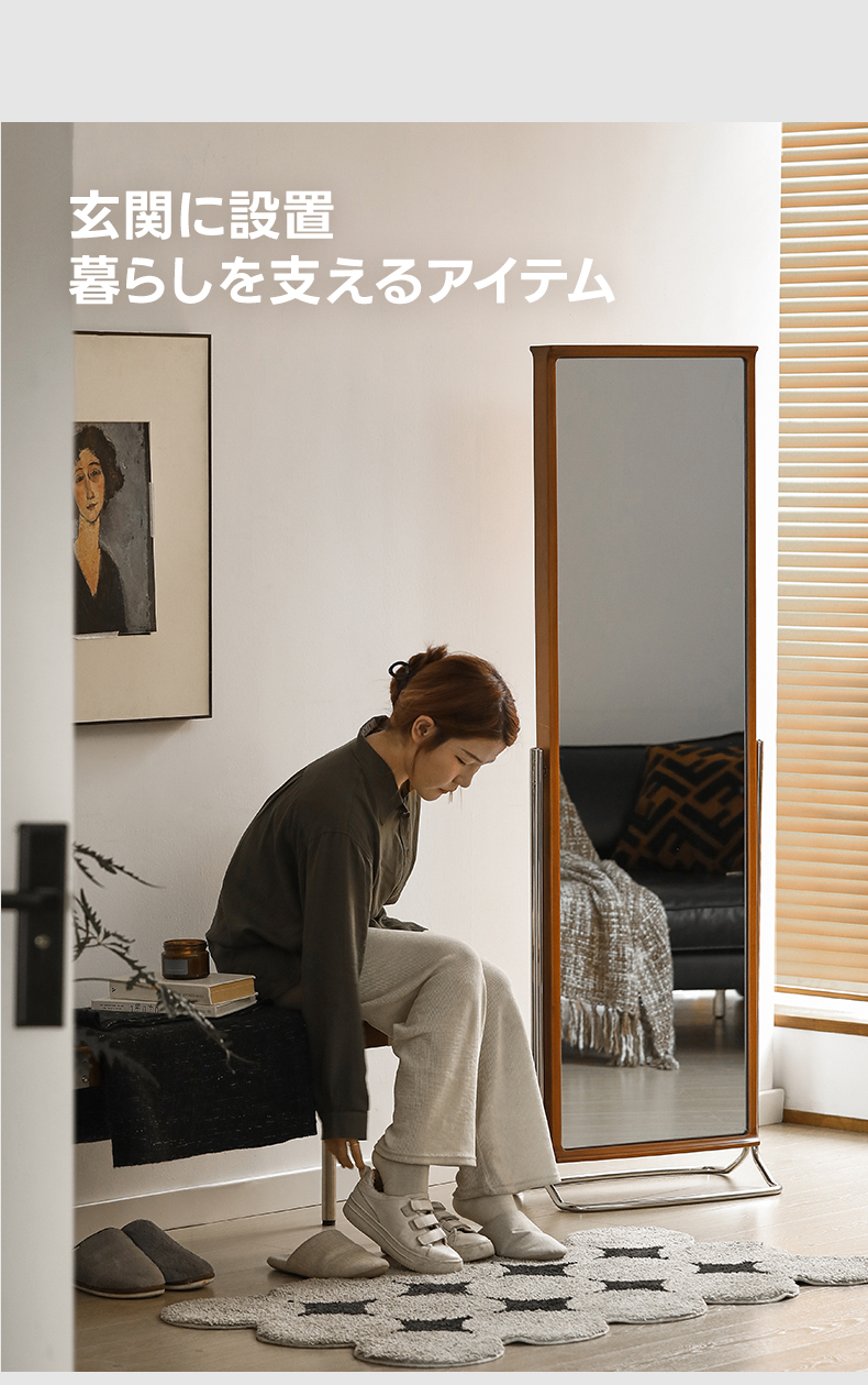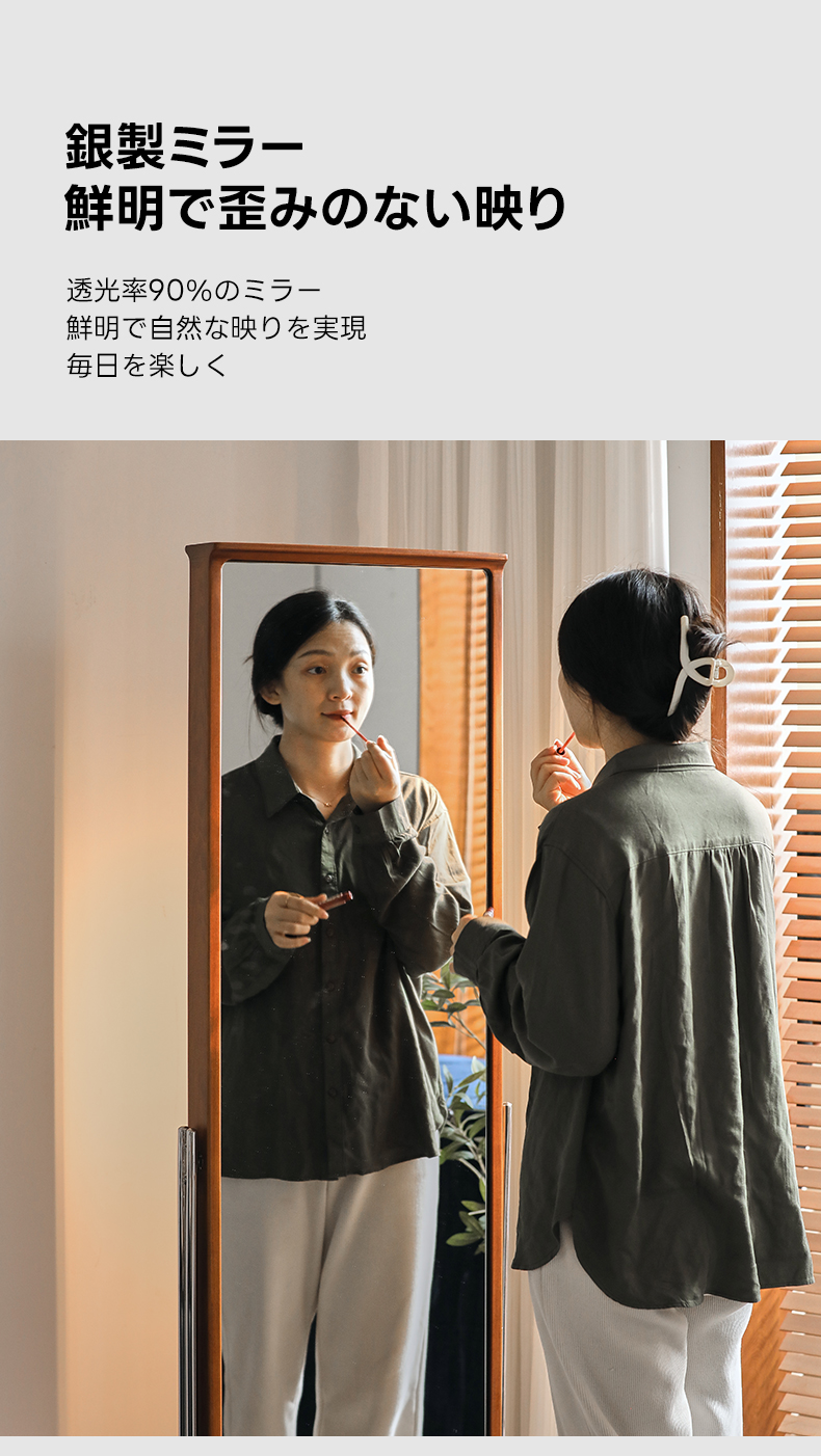 - 【ツゲ材使用の高級感あふれるスタンドミラー】このスタンドミラーは、FAS級北米産輸入ツゲ材を使用しており、耐久性と美しい木目が特徴です。高透過率90%の銀製ミラーで、歪みのないクリアな映りを実現します。