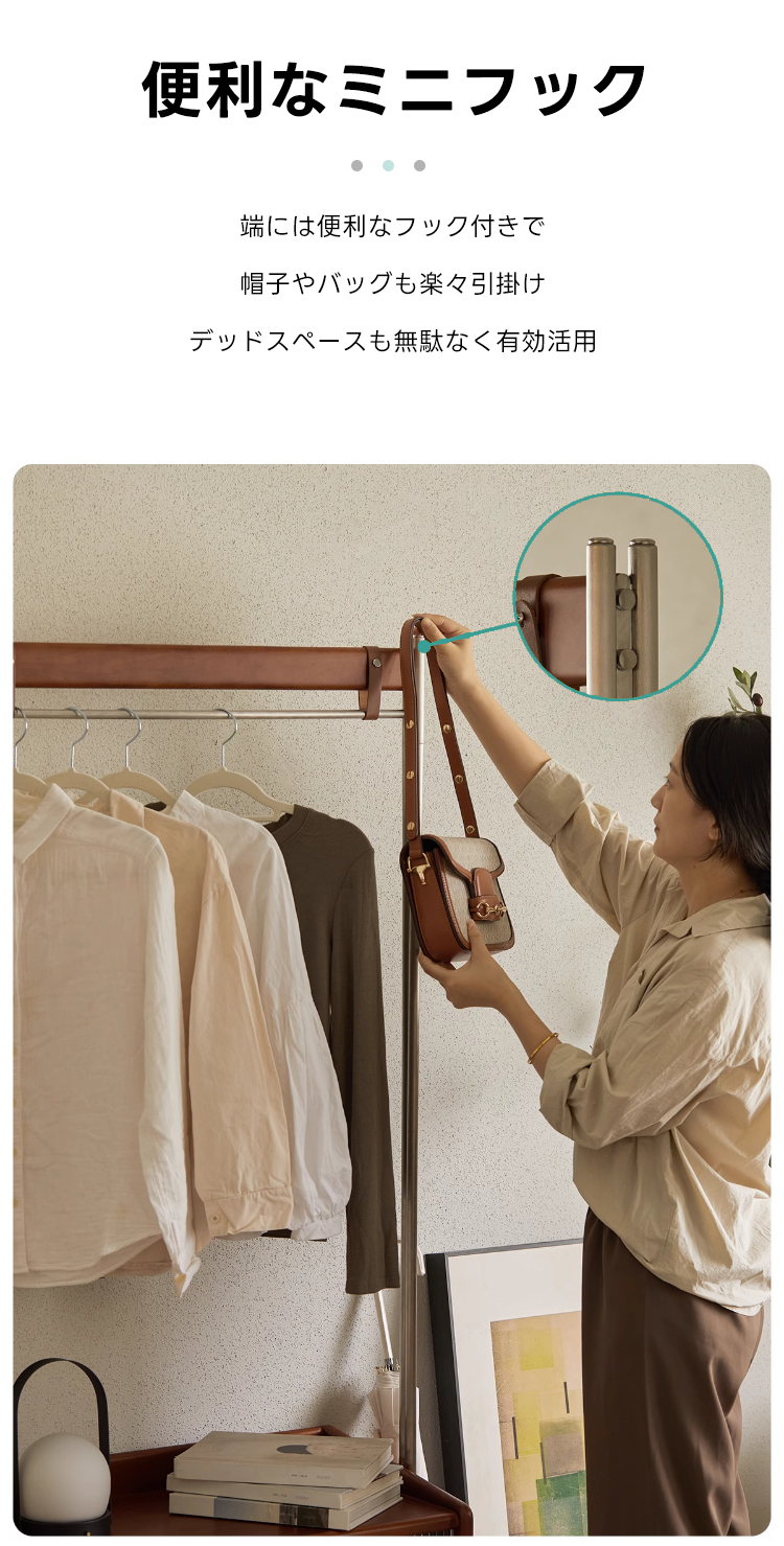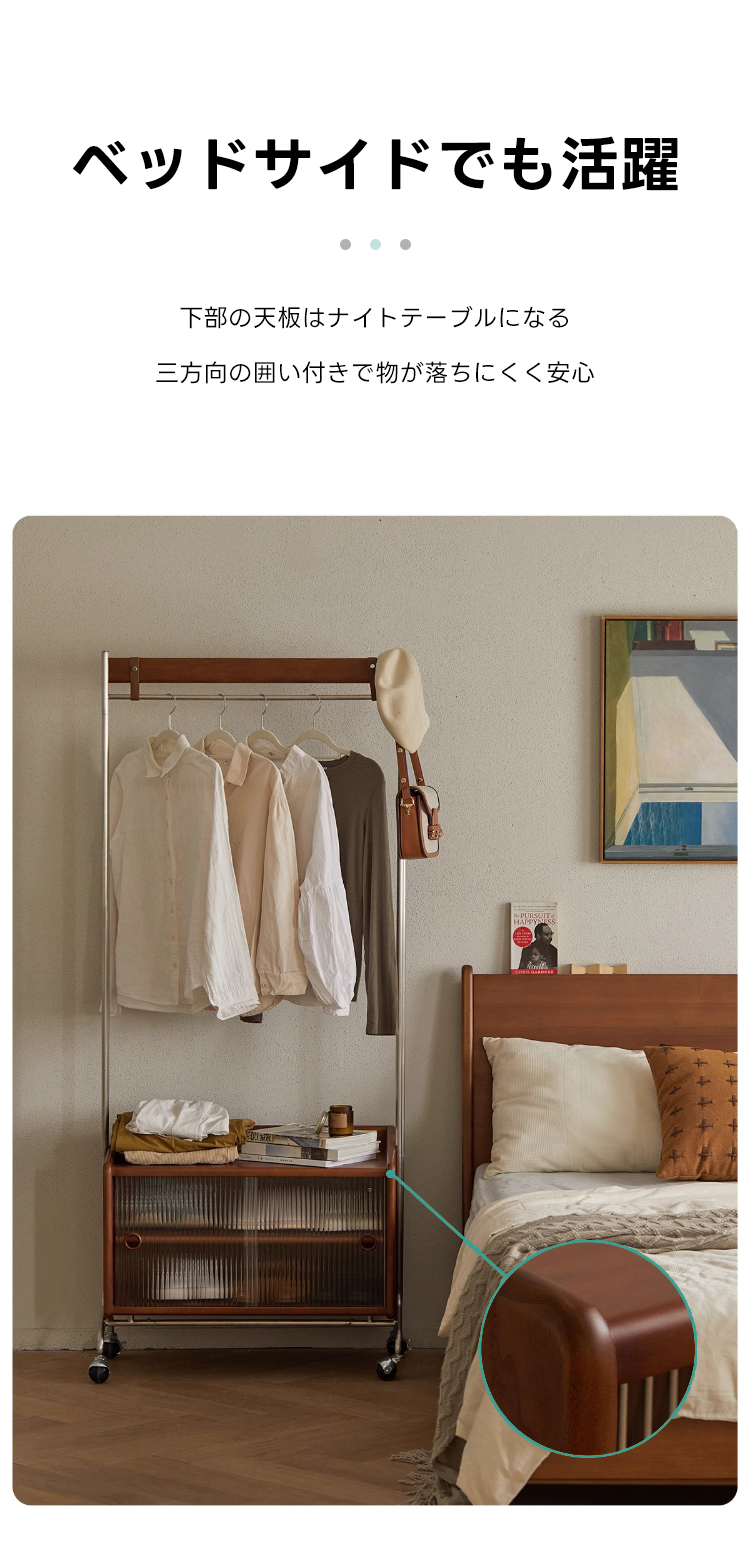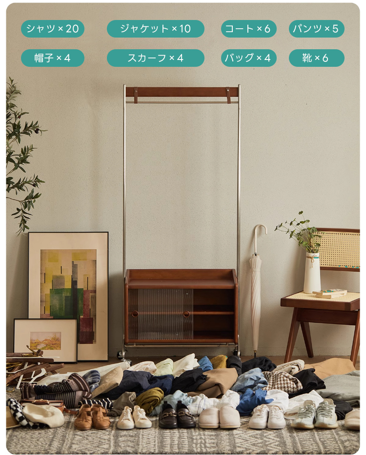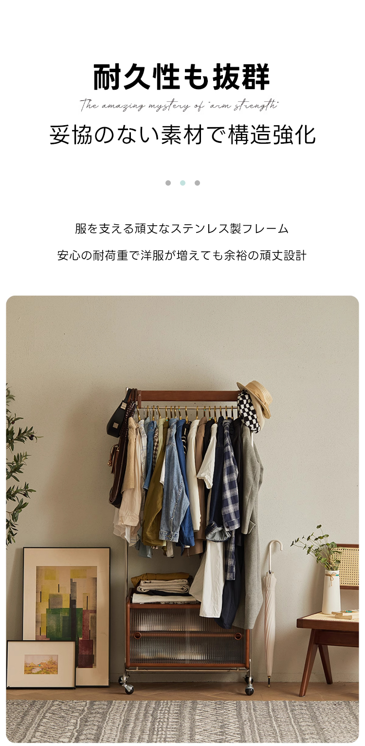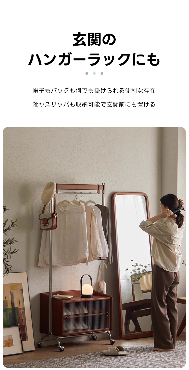 - 【多機能収納で整理整頓】:このフロアハンガーは、衣類を掛けるだけでなく、下部に収納キャビネットを備えています。シャツや小物を整理しやすく、サイドテーブルとしても利用可能です。キャスター付きで移動が簡単、部屋のどこにでも配置できます。