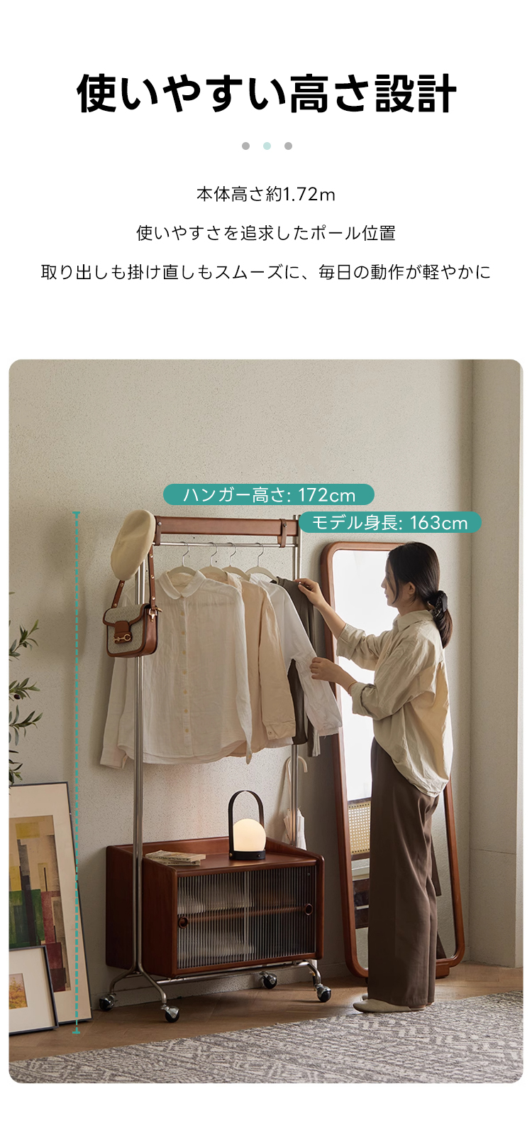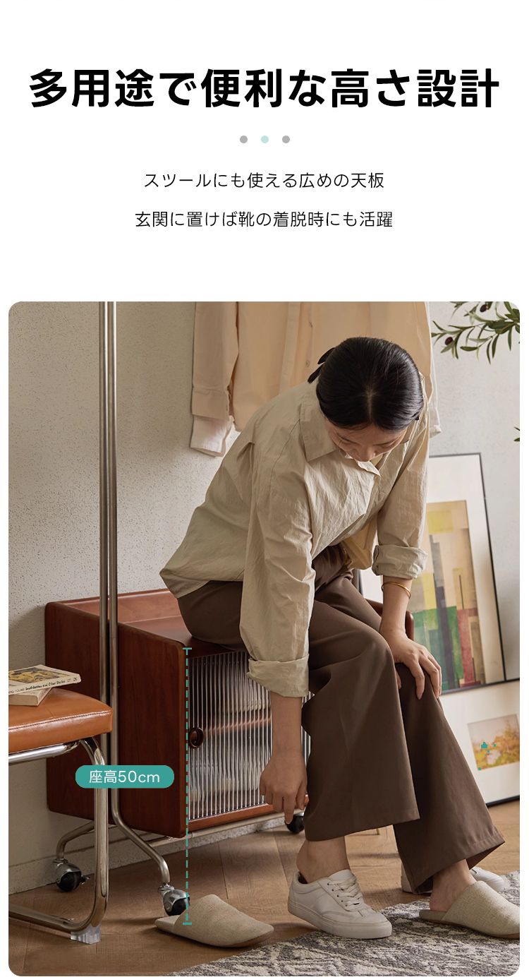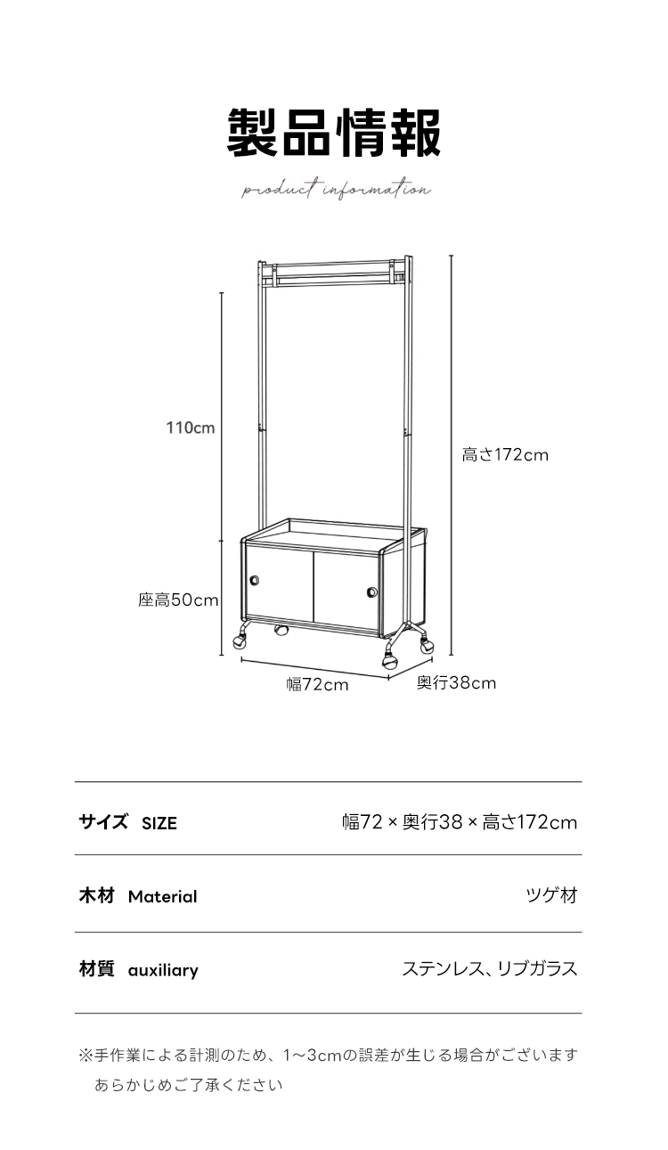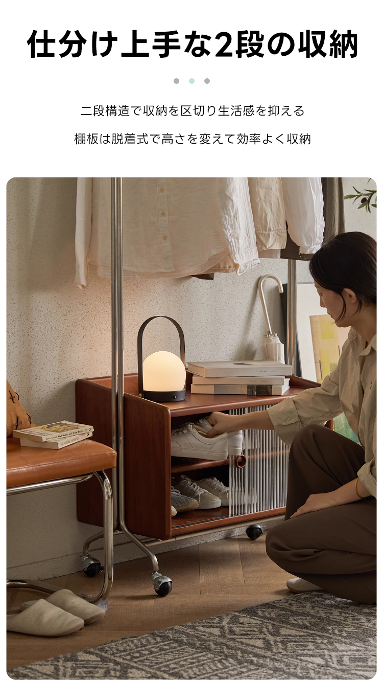 - 【多機能収納で整理整頓】:このフロアハンガーは、衣類を掛けるだけでなく、下部に収納キャビネットを備えています。シャツや小物を整理しやすく、サイドテーブルとしても利用可能です。キャスター付きで移動が簡単、部屋のどこにでも配置できます。