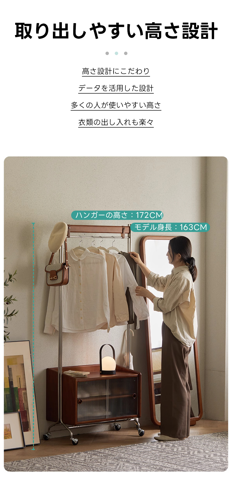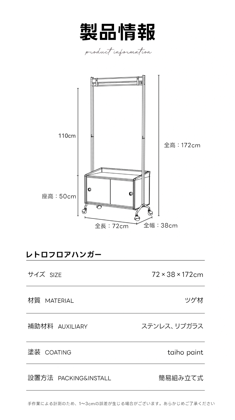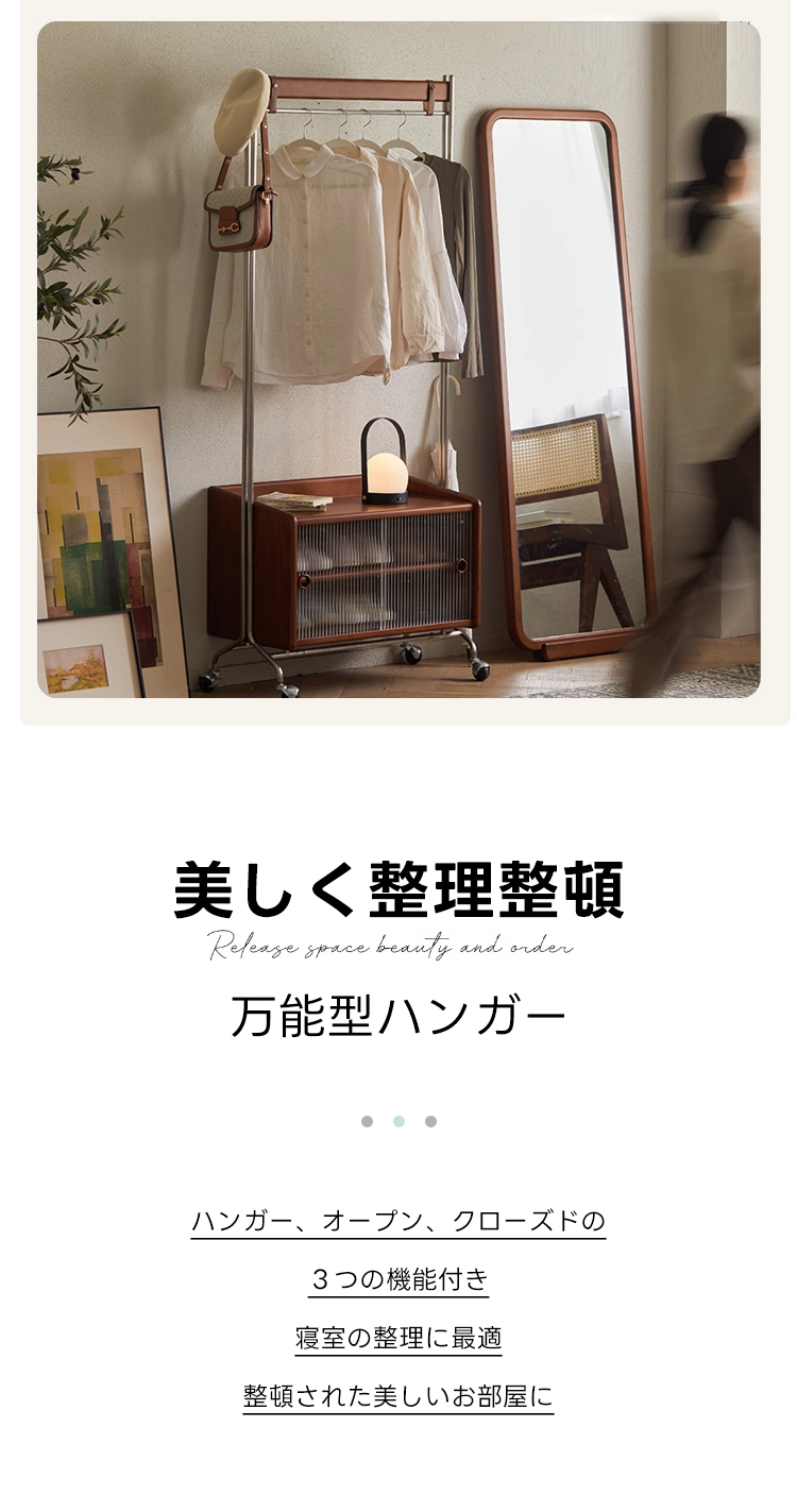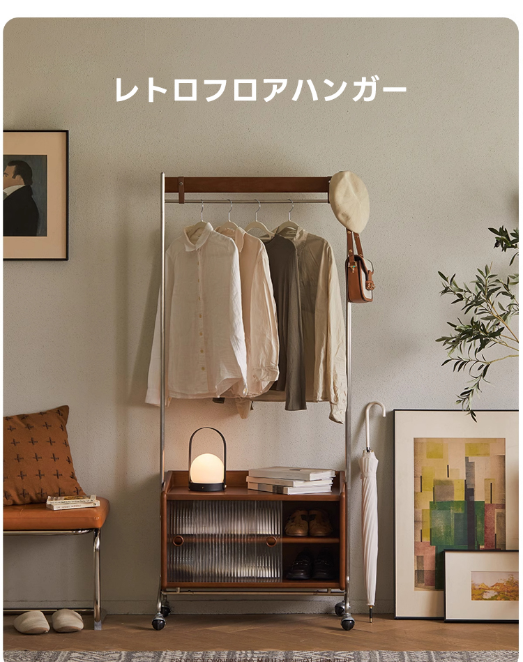 - 【多機能デザインで効率的な収納を実現】このレトロフロアハンガーは、ハンガー、オープン収納、クローズド収納の3つの機能を一体化。衣類や小物を整理整頓でき、限られたスペースを有効活用できます。