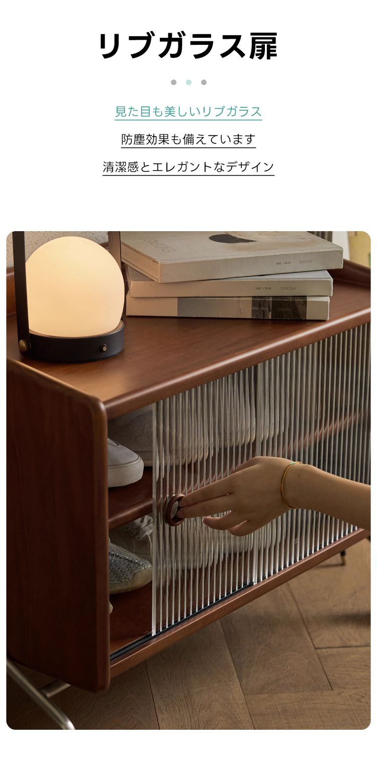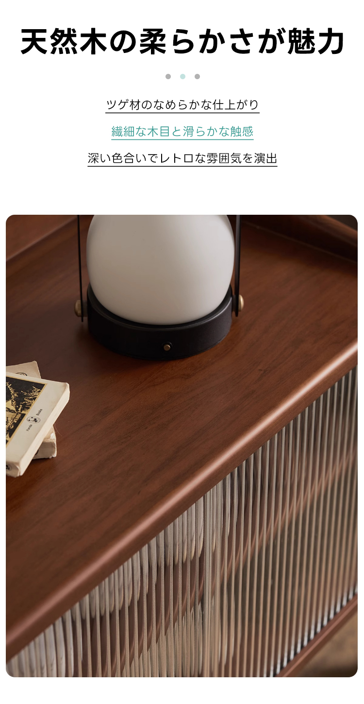 - 【高級素材と洗練されたデザイン】ツゲ材を使用し、滑らかな仕上がりと繊細な木目が魅力。ステンレス製のフレームとリブガラスの扉が、耐久性とエレガントさを引き立てます。