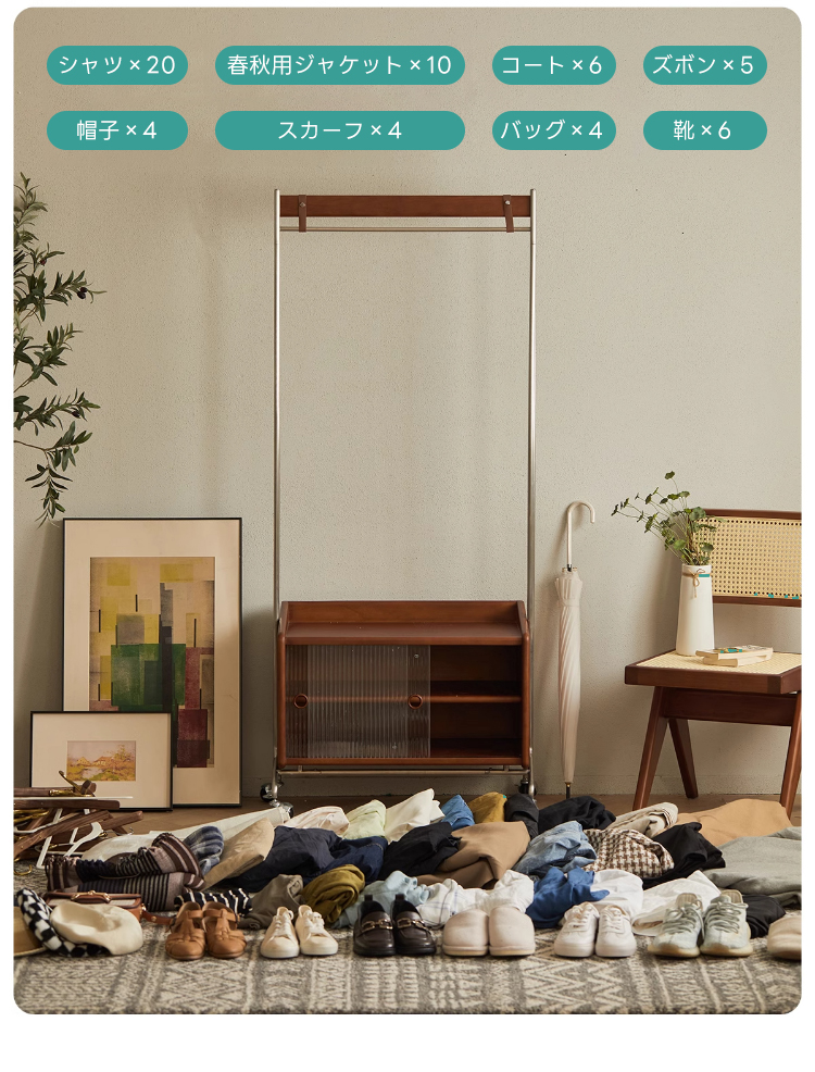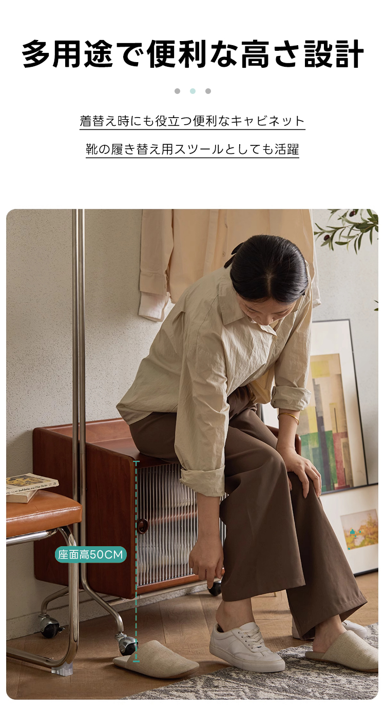- 【様々な空間にフィットするデザイン】キャスター付きで簡単に移動可能。リビングや寝室、玄関など、どの空間にもぴったりフィットし、カップルやファミリー、一人暮らしの方々に最適です。
