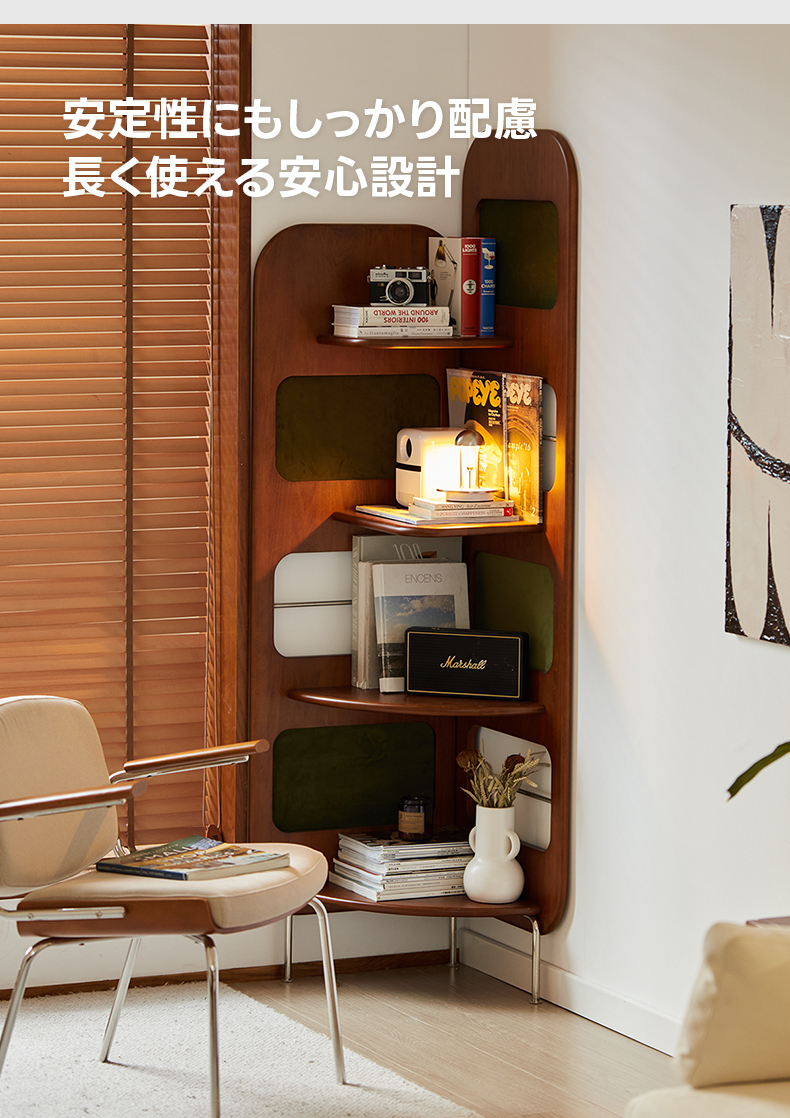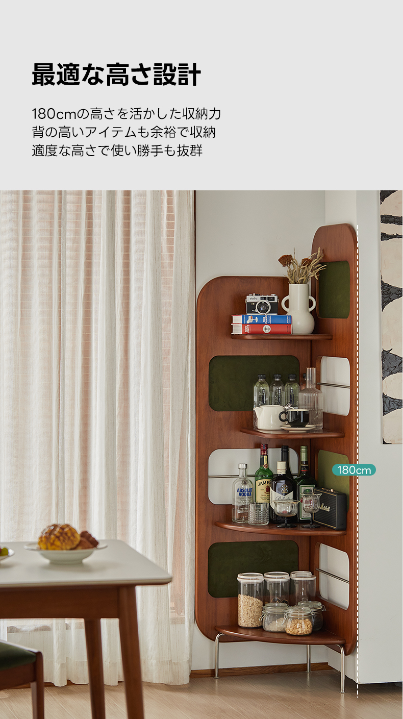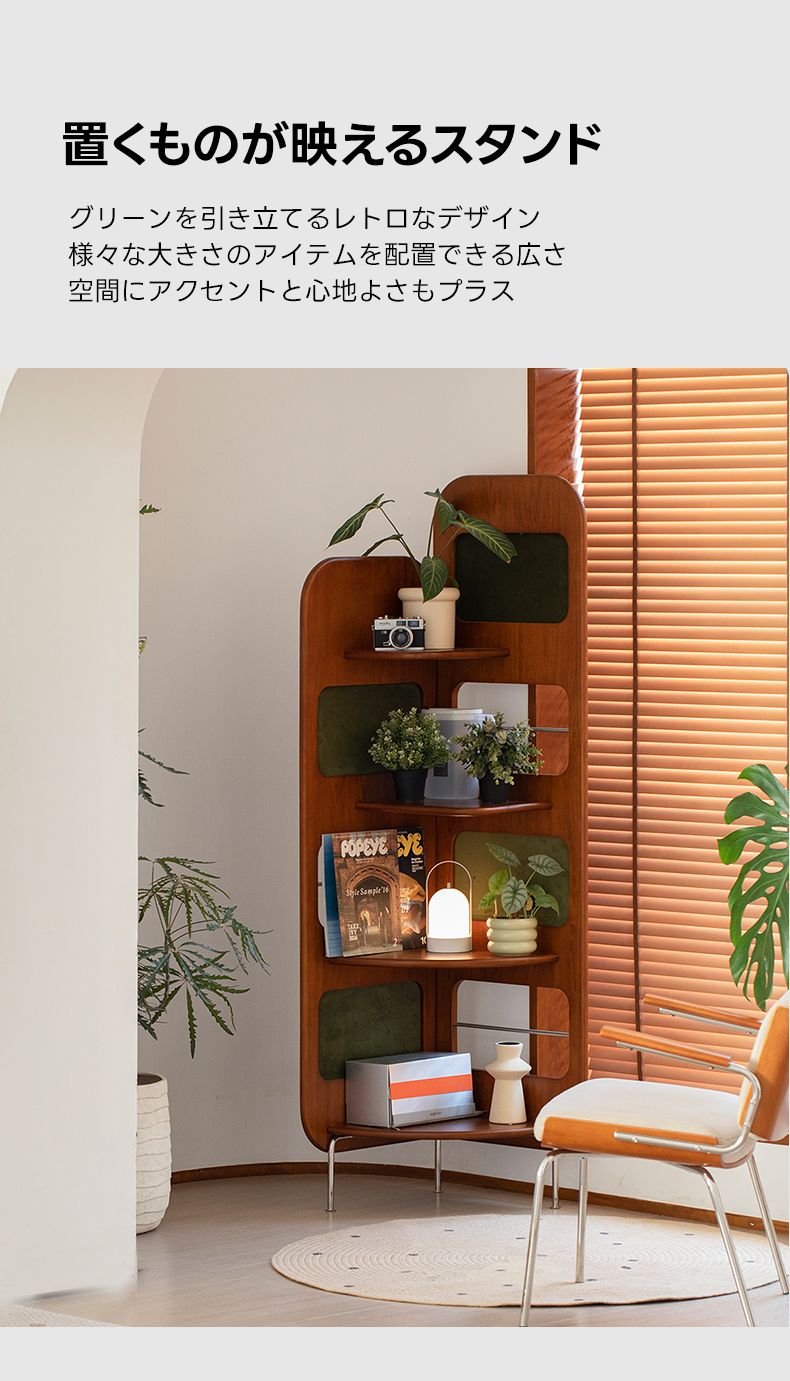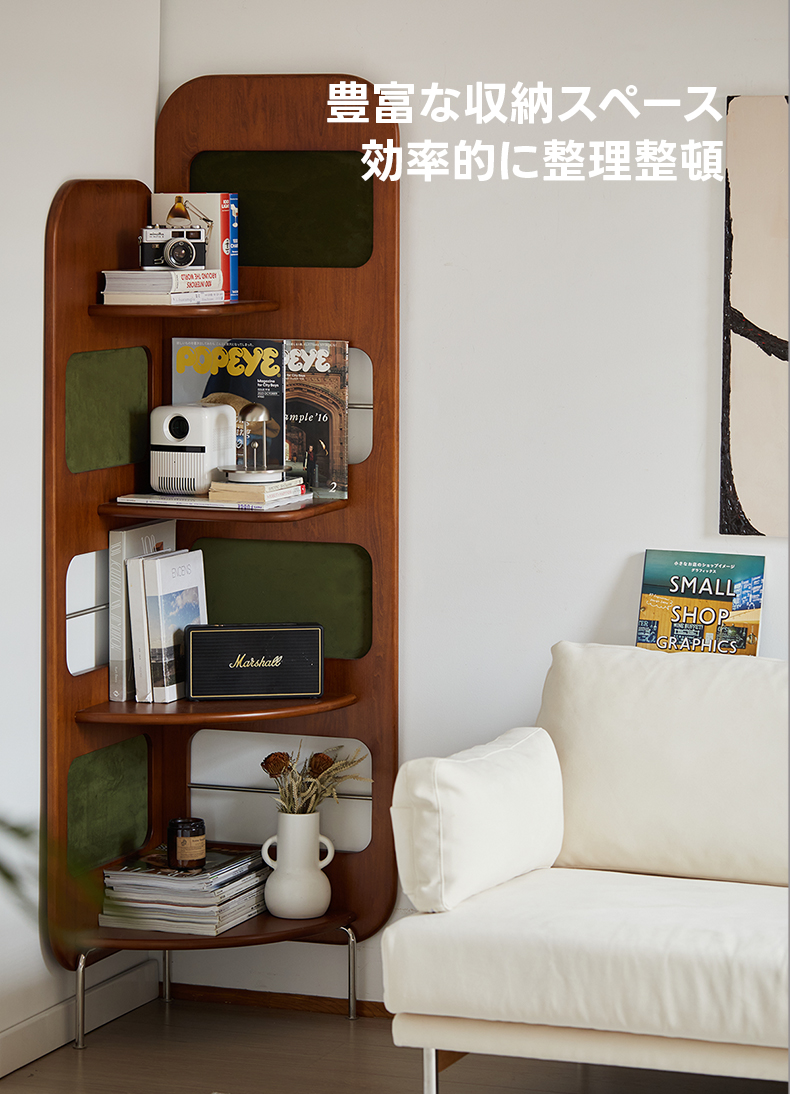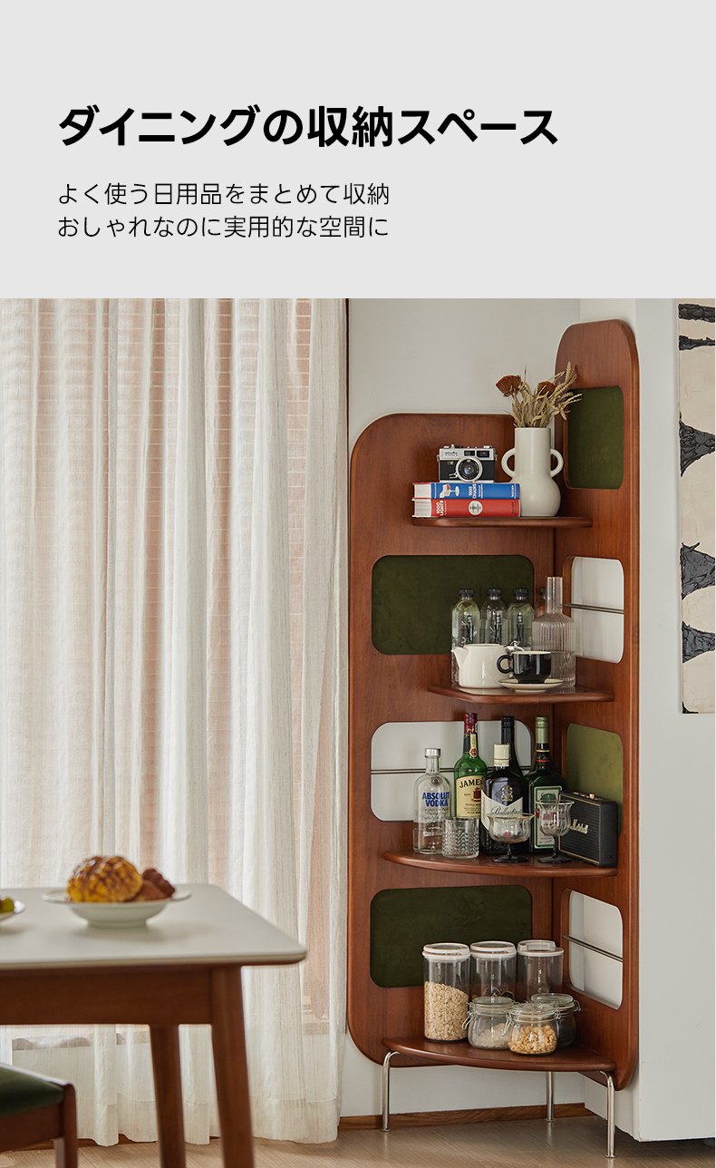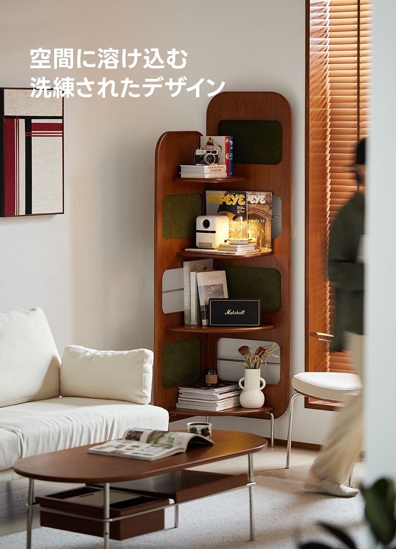 - 【多用途の収納機能】:Woody Prime Boxツゲ材 レトロコーナーラックは、四段構造で書籍や装飾品、食器類まで幅広く収納可能です。ヴィンテージ調のデザインが、どんなインテリアにも調和し、エレガントなアクセントを加えます。