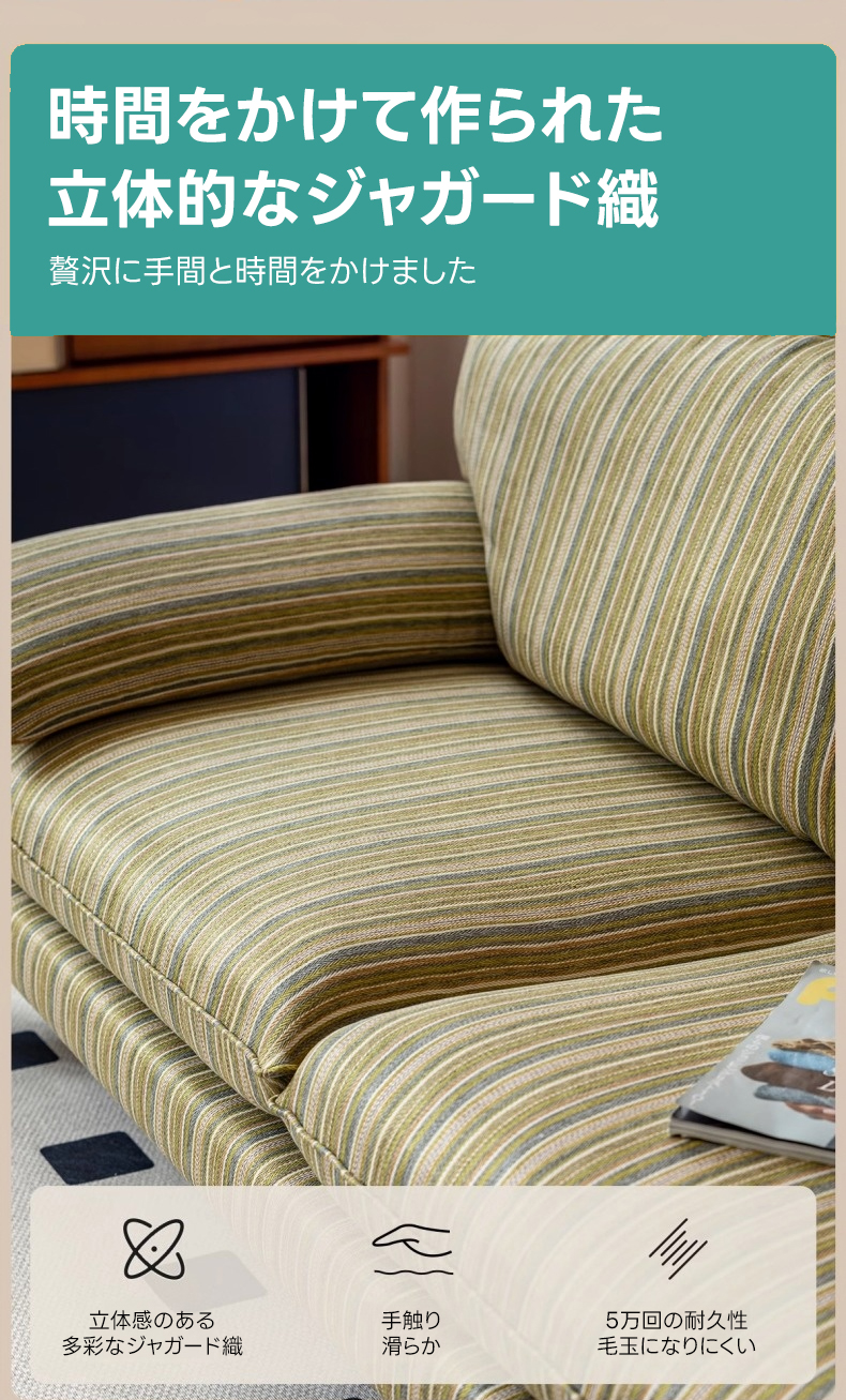 - 【選べるファブリック】ジャガード織とシェニール織の2種類のファブリックから選べ、どちらも滑らかで肌触りが良く、耐摩耗性に優れています。ダークグリーンとライトグリーンの2色展開で、お部屋の雰囲気に合わせて選べます。