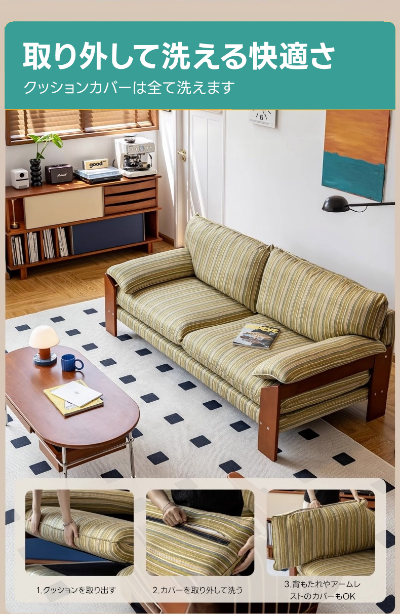 - 【清潔に保てる機能性】取り外し可能なクッションカバーは全て洗濯可能で、いつでも清潔に保てます。幅広の脚部は安定性があり、6人が座っても余裕の強度を誇ります。