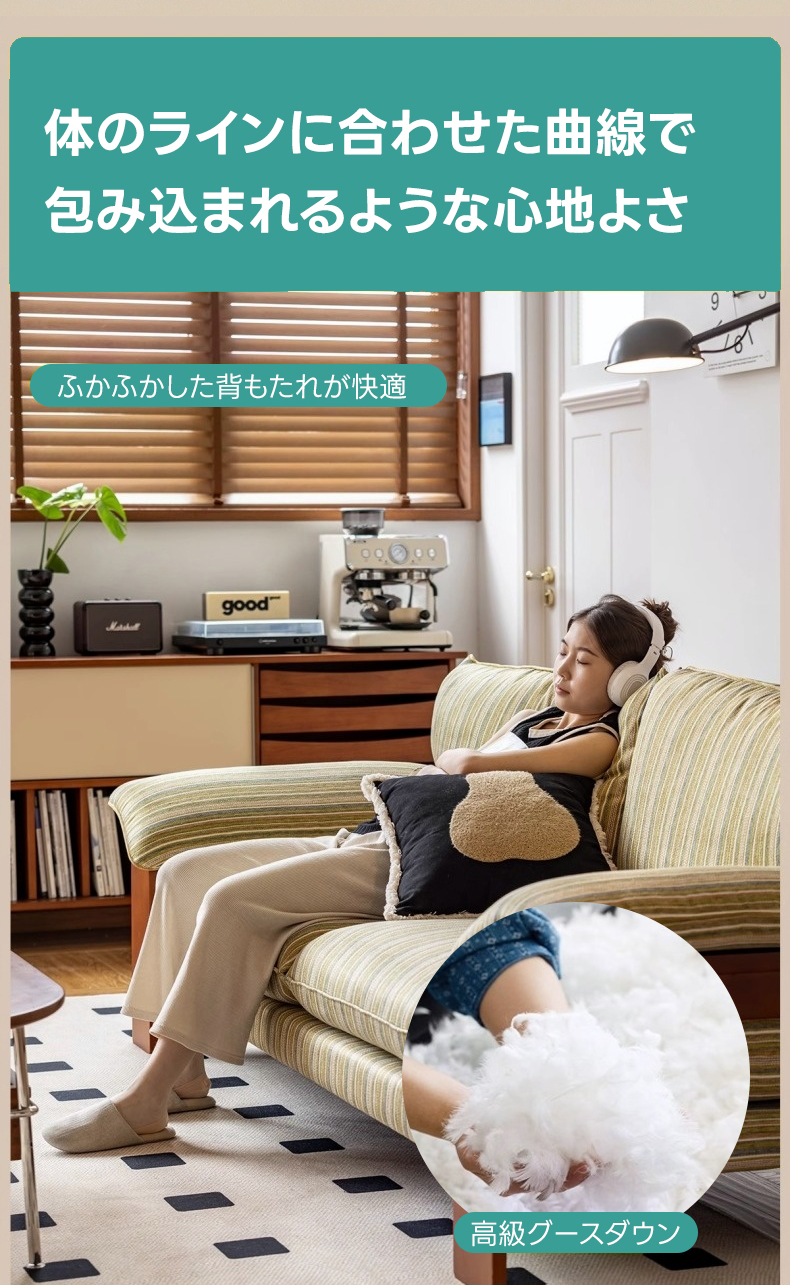 - 【快適な座り心地】高品質なグースダウンと高反発ウレタンを使用したクッションは、長時間座ってもへたりにくく、快適な座り心地を提供します。広々とした座面は、ゆったりとくつろげる空間を作り出します。