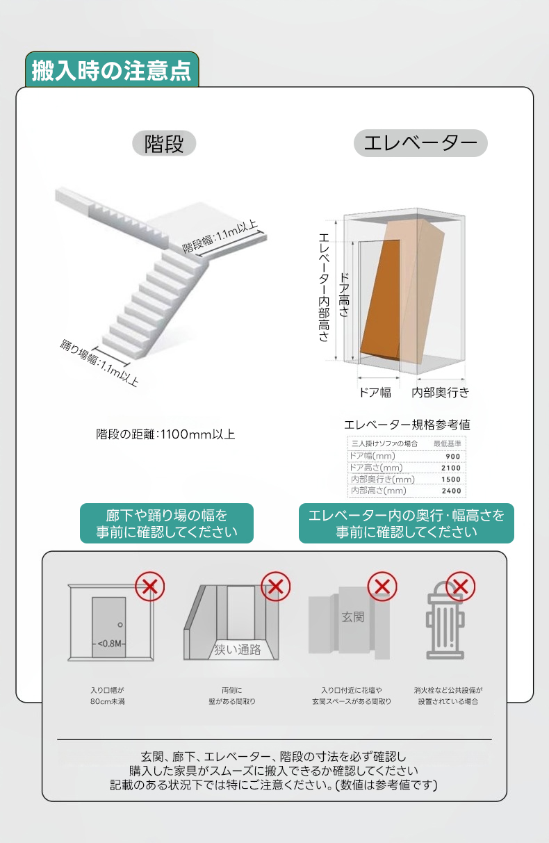 ※搬入不可等の理由による注文キャンセルは、ご返送にかかる費用をお客様にご請求いたします。ご注文前に大型家具の搬入方法をご確認ください。