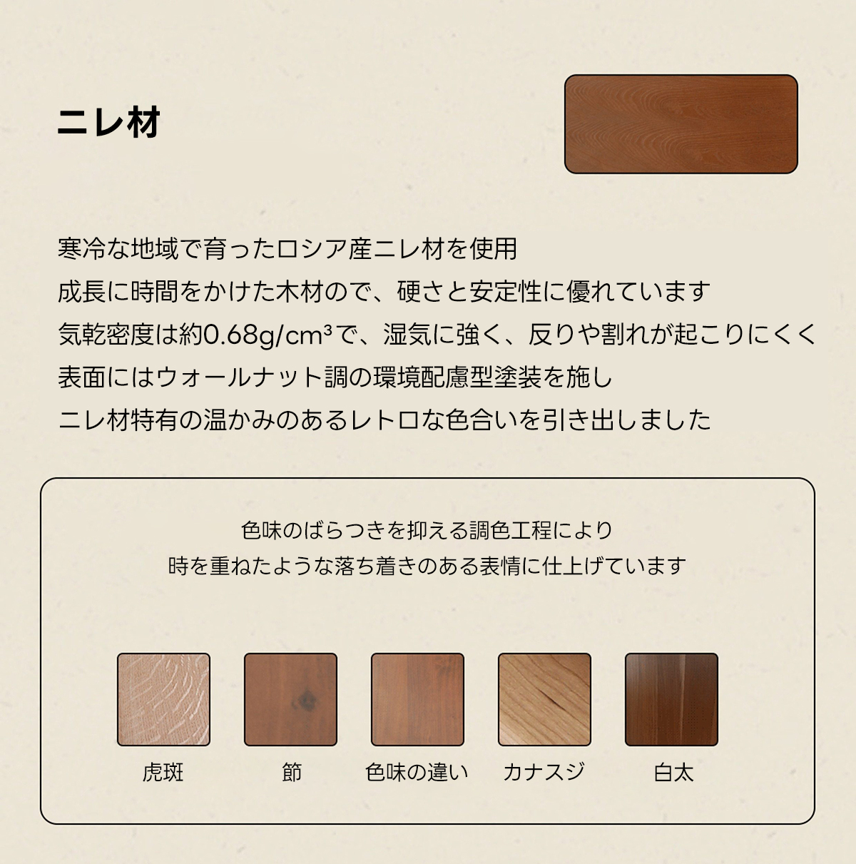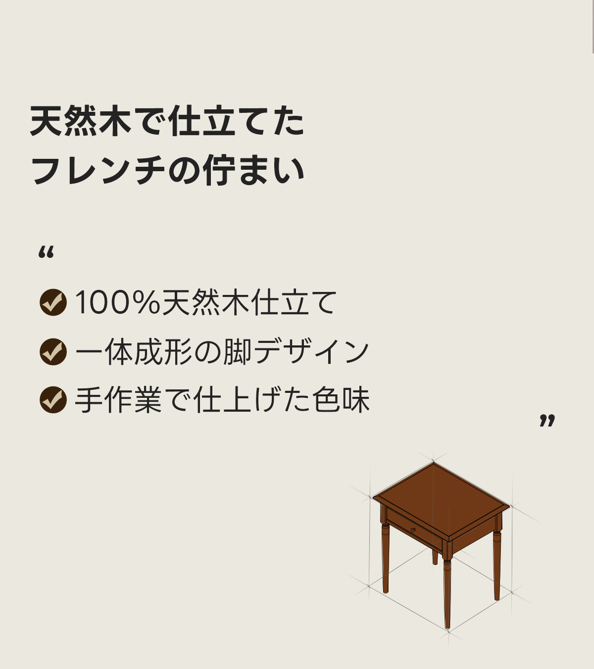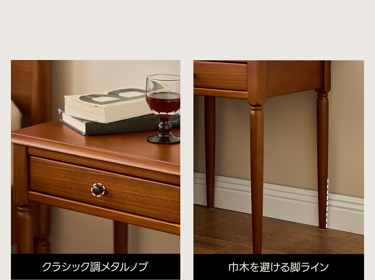 - 【高品質な素材とデザイン】100%天然木を使用し、ロシア産のニレ材を採用。耐久性が高く、湿気にも強いため、長くお使いいただけます。クラシックなフレンチスタイルで、一体成形の脚デザインが洗練された印象を与えます。