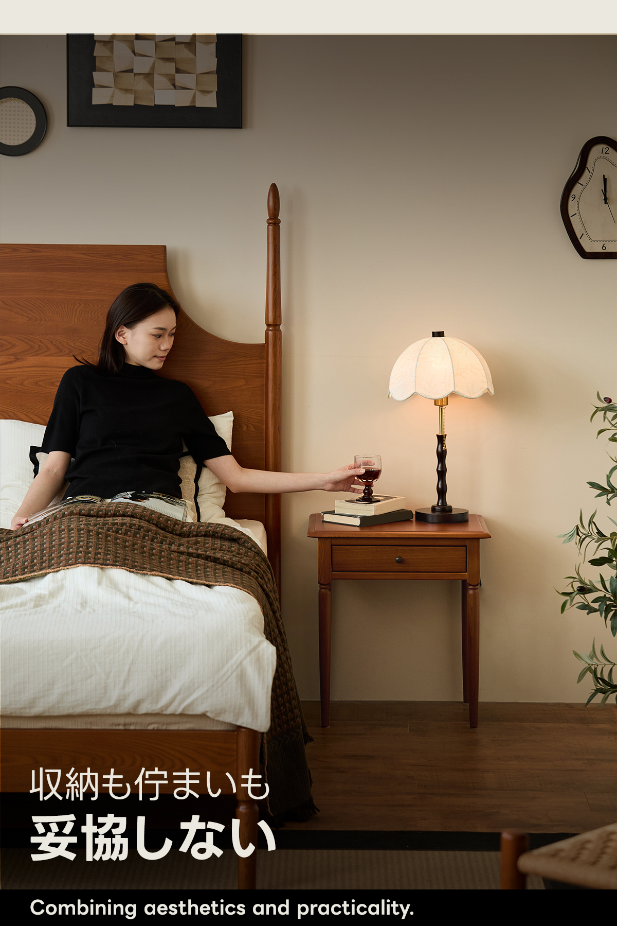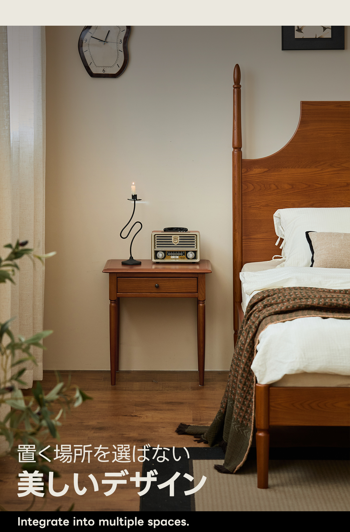 - 【多様な使用シーン】このサイドテーブルは、寝室やベッドルームにぴったりのアイテムです。ナチュラルなブラウンの色合いがどんなインテリアにも調和し、温かみのある雰囲気を演出します。一人暮らしの方やカップル、ファミリーにも最適です。