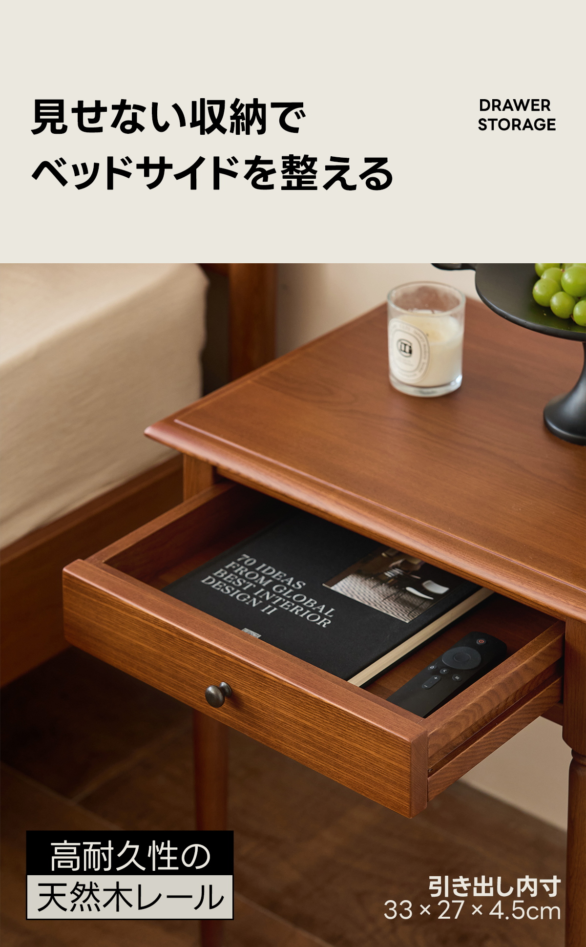 - 【優れた収納力と機能性】Woody Prime Box クラシックラインサイドテーブルは、コンパクトながらも優れた収納力を持ち、リモコンや小物をすっきりと収納できます。引き出しのサイズは33cm x 27cm x 4.5cmで、日常の必要品を整理整頓するのに最適です。