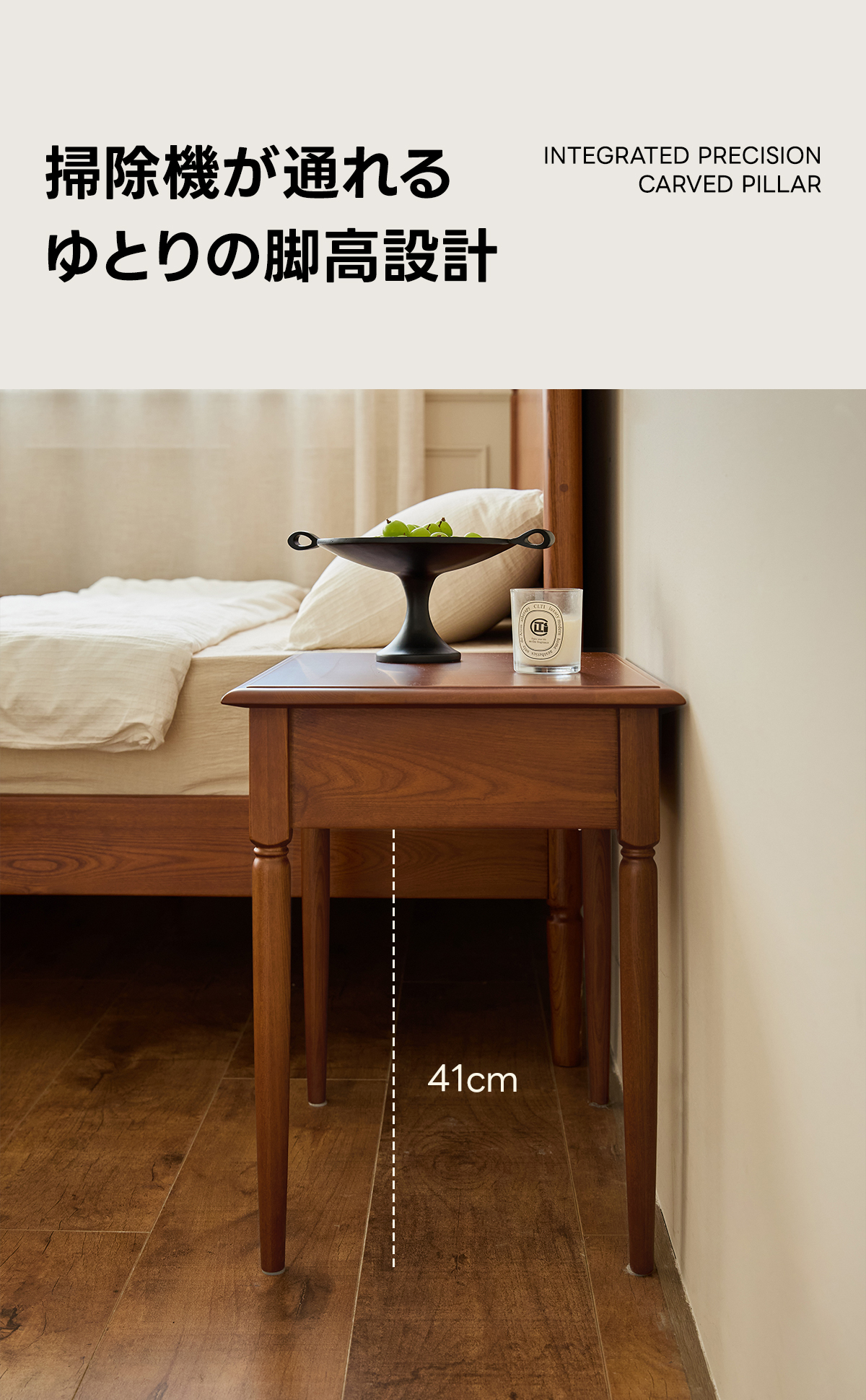 - 【快適な使用体験】高さ41cmの脚は、掃除機が通りやすい設計になっており、掃除も簡単です。手作業で仕上げた色味と4層構造の保護仕上げにより、美しい表面を保ちます。ウォールナット調の環境配慮型塗装が施され、レトロで落ち着いた色合いが特徴です。