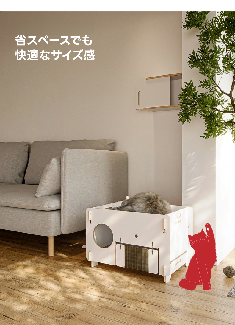 - 【エコ素材使用で安心】合成板を使用したこもれびキャットハウスは、環境に優しい素材で作られており、耐久性に優れています。ペットが安心して過ごせる安全な構造で、長持ちする設計です。