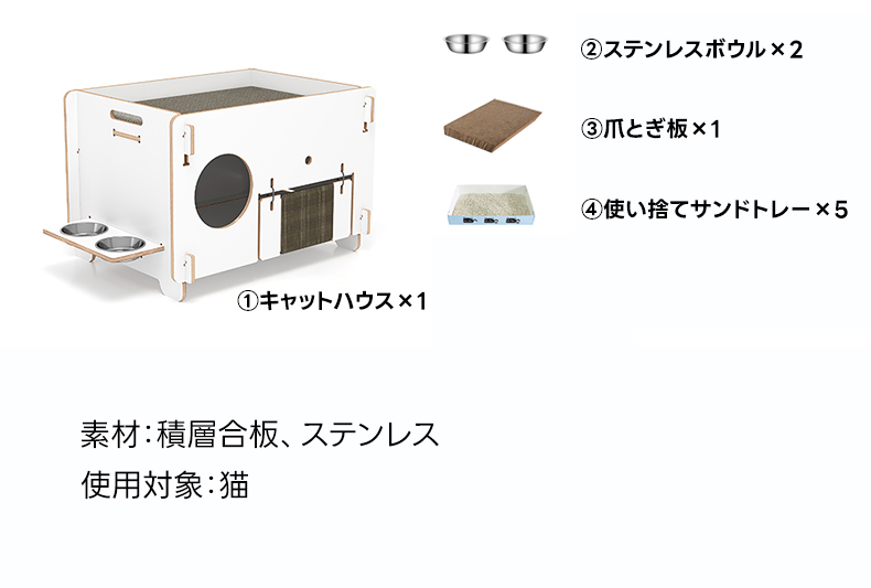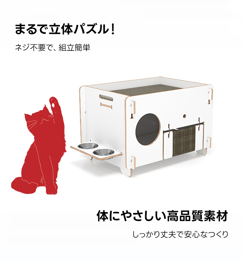 - 【付属品で快適な生活】ステンレス製のフードスタンドが付属し、食事や水分補給が簡単に行えます。また、爪とぎ板も付いており、猫のストレス解消に役立ちます。ペットの自然な行動をサポートし、快適な居場所を提供します。