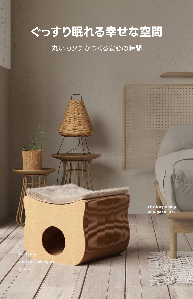 - 【多様な適用シーン】ナチュラルなブラウンカラーが特徴のこのペットハウスは、リビングや寝室、玄関など、どんな空間にも自然に馴染みます。一人暮らしの方やカップル、ファミリーにも最適で、ペットとの暮らしをより豊かにします。