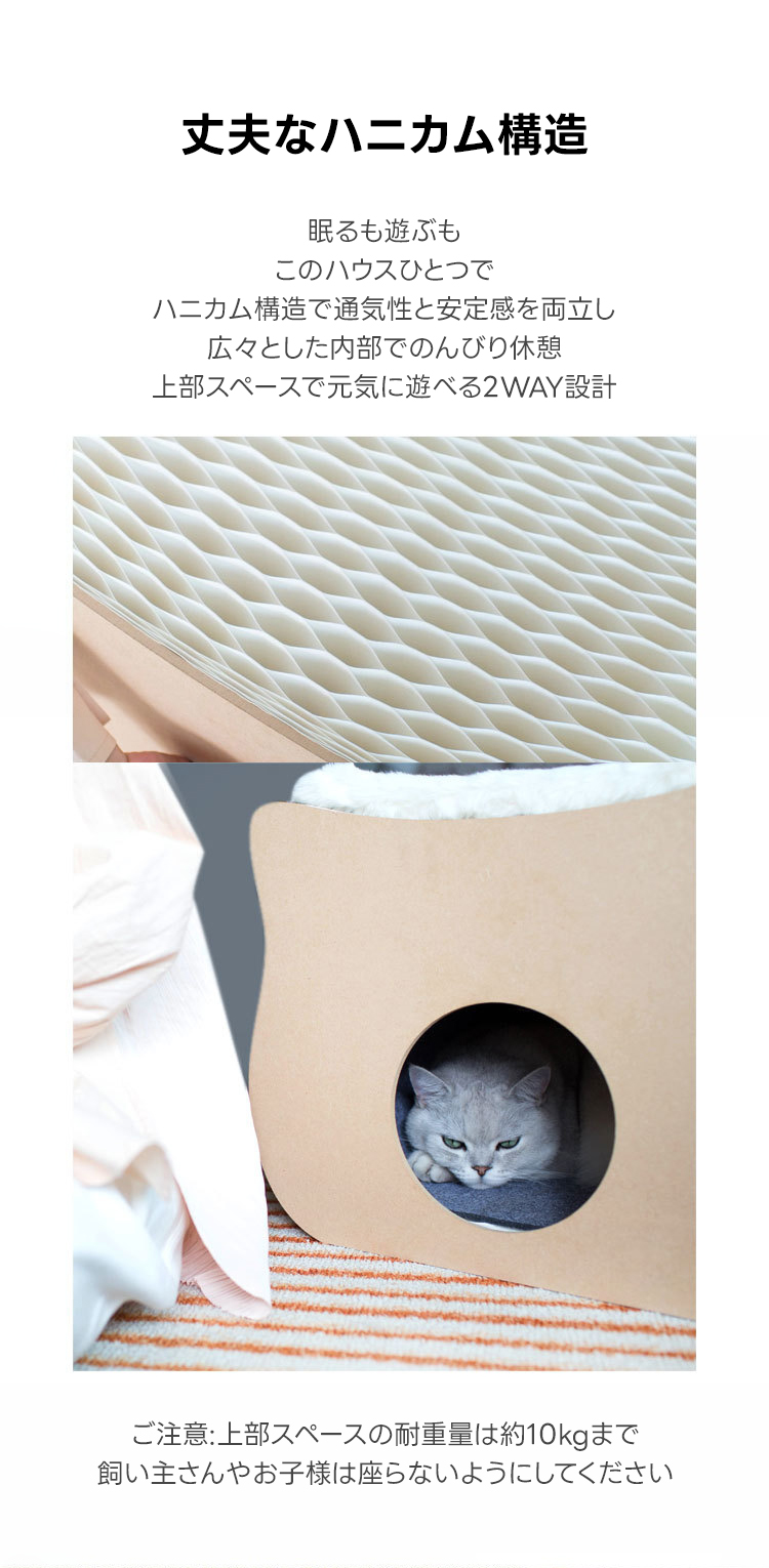 - 【環境に優しい素材とデザイン】クラフト紙とOSBボードを使用し、環境に優しいエコ素材で作られています。ハニカム構造により、通気性と安定性を兼ね備え、ペットに安全で快適な空間を提供します。