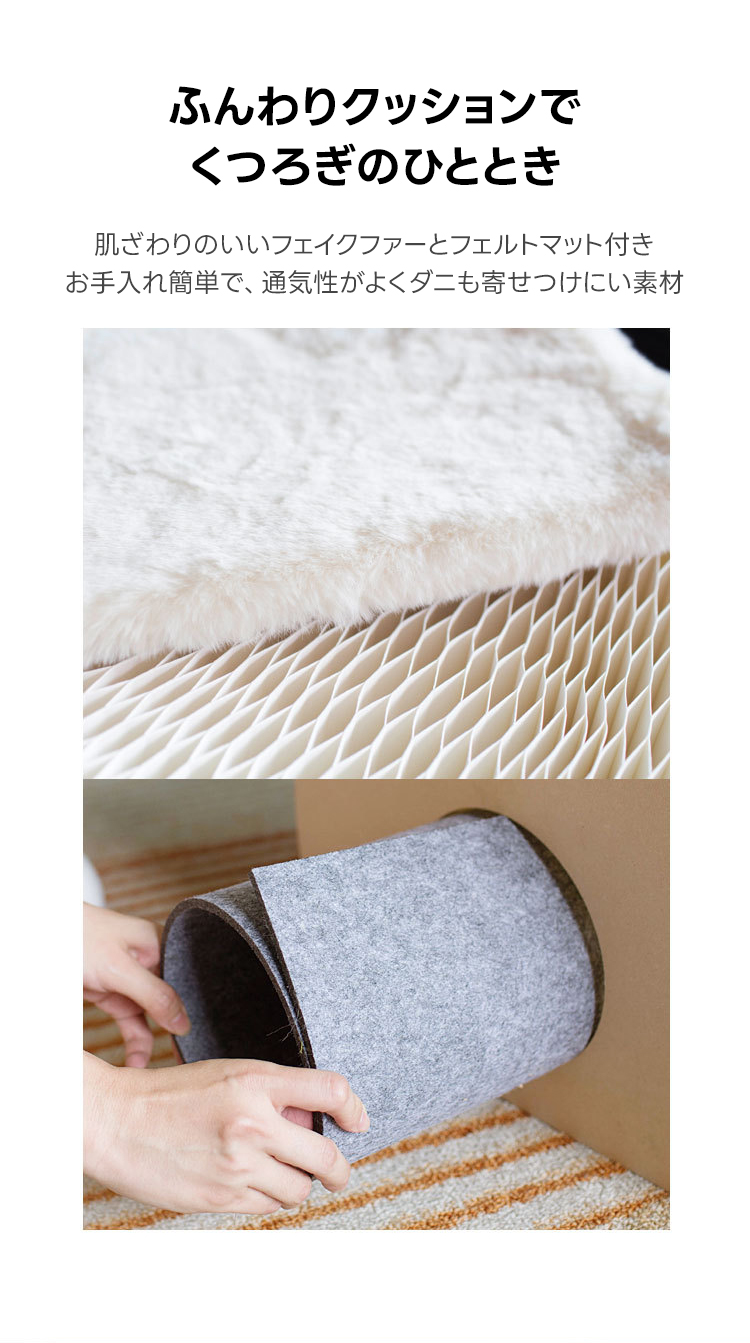 - 【ペットに優しい快適空間】上部のクッションはふんわりとしたフェイクファーで、ペットに快適な休息を提供します。内部は広々としており、ペットがのんびりとくつろげるスペースを確保しています。