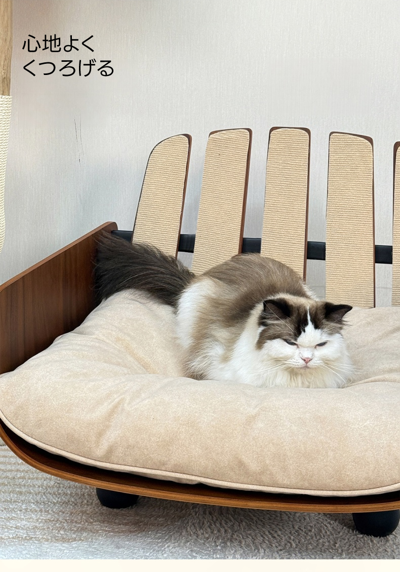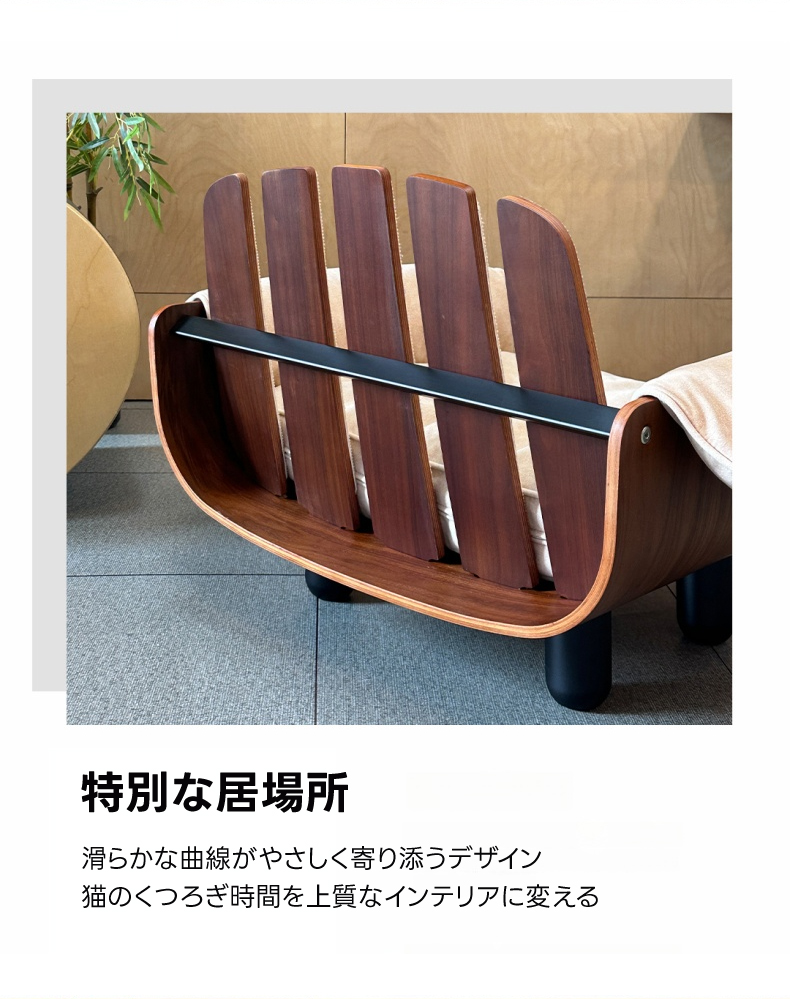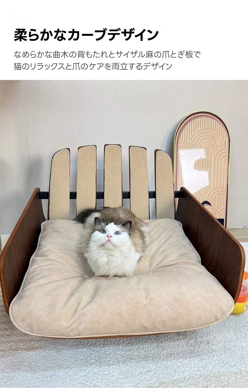 - 【ペットと人間の快適さを追求】このカーブウッドキャットソファは、ペットと人間の両方に快適さを提供するためにデザインされています。広々とした座面と厚みのあるクッションが、猫がくつろぐのに最適な環境を提供します。