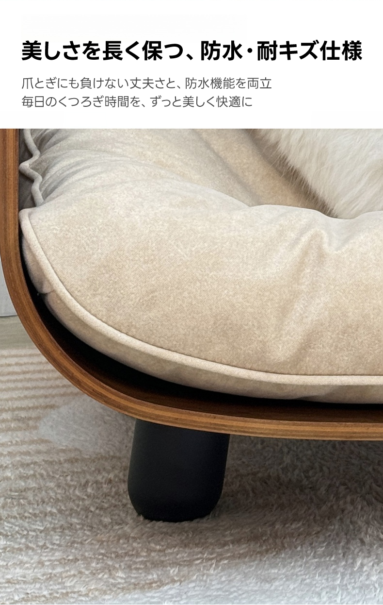 - 【高品質な素材とデザイン】ユーカリ材の曲木成形と防水マイクロファイバー生地を使用し、耐久性と高級感を兼ね備えています。ペットの爪による傷や水分からソファを守ります。