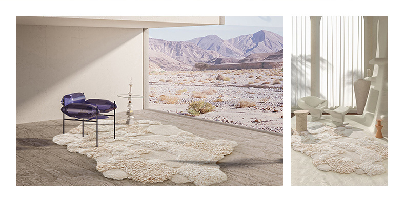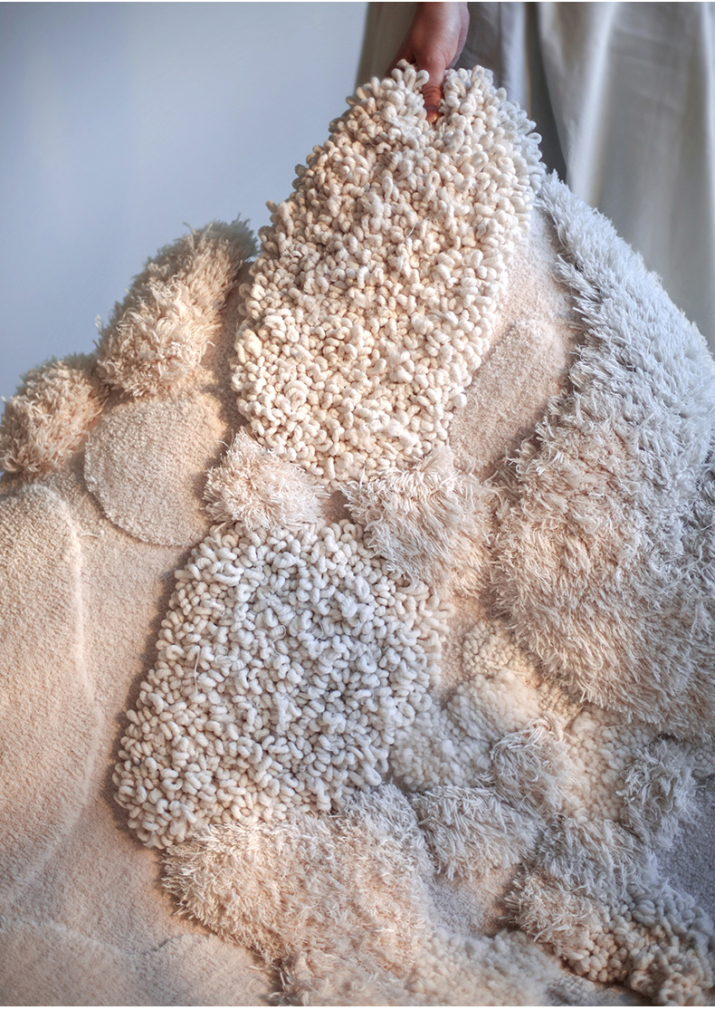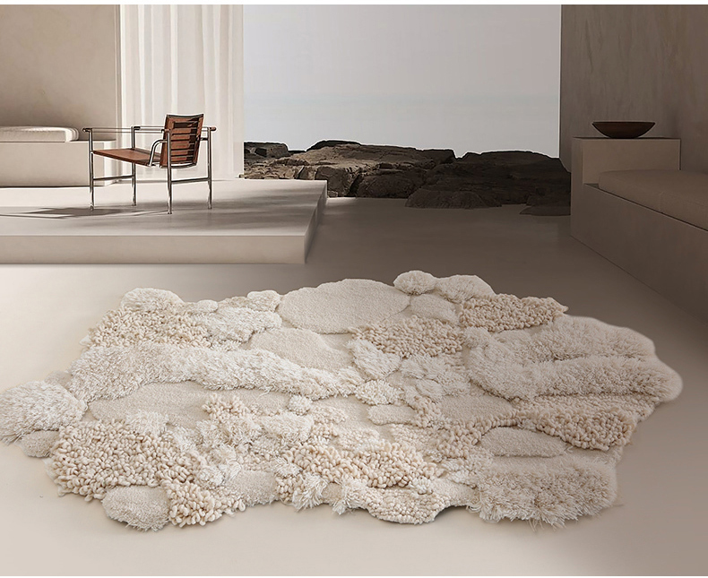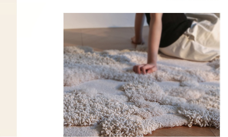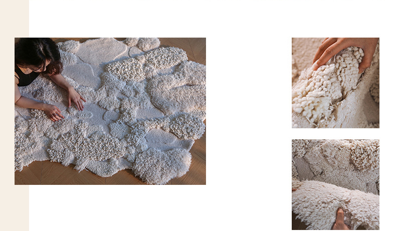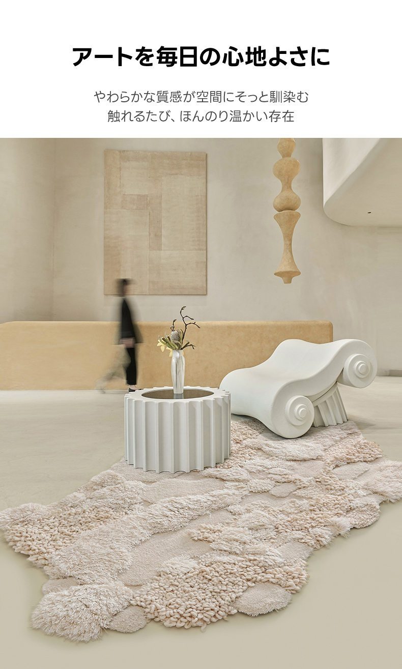- 【高級感あふれるウールラグ】スノーフォレストラグは、ウール、ポリエステル、竹繊維を組み合わせた高級感あふれるラグです。約40mmの長毛が足元を優しく包み込み、贅沢な踏み心地を実現します。不規則な形状がどんなインテリアにも自然に溶け込み、空間を一層引き立てます。