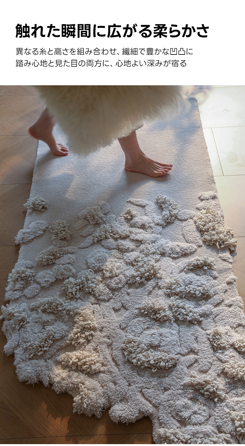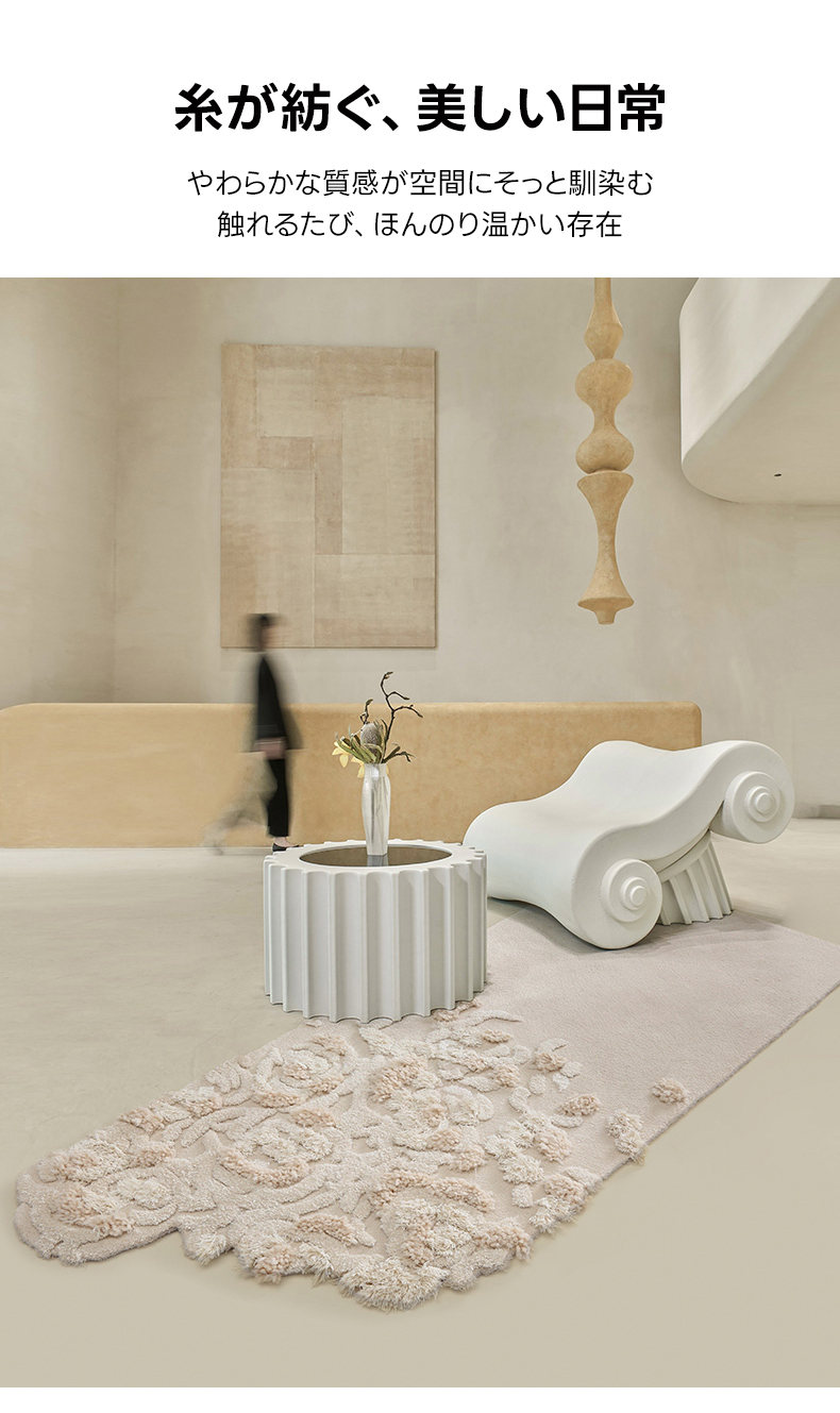 - 【優雅なデザインと贅沢な質感】:フローラルレリーフラグは、ホワイトを基調とした不規則なデザインが特徴で、部屋全体にアート作品のような印象を与えます。立体的なフローラルパターンが視覚と触覚の両方で楽しめます。