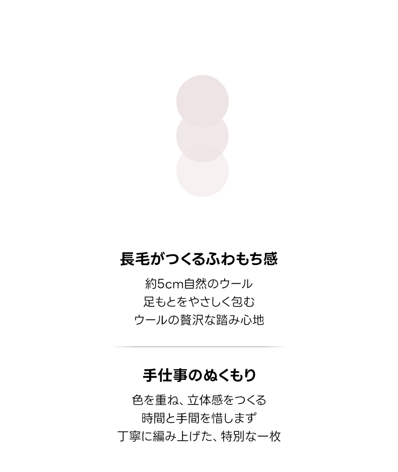 - 【高品質な素材と手仕上げ】:約5cmの長毛ウールが足元を優しく包み込み、贅沢な踏み心地を提供します。ウールとポリエステルの組み合わせにより、耐久性と快適さを両立。ペルシャ級の手仕上げが高品質を保証します。