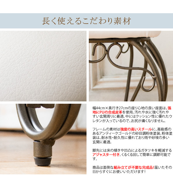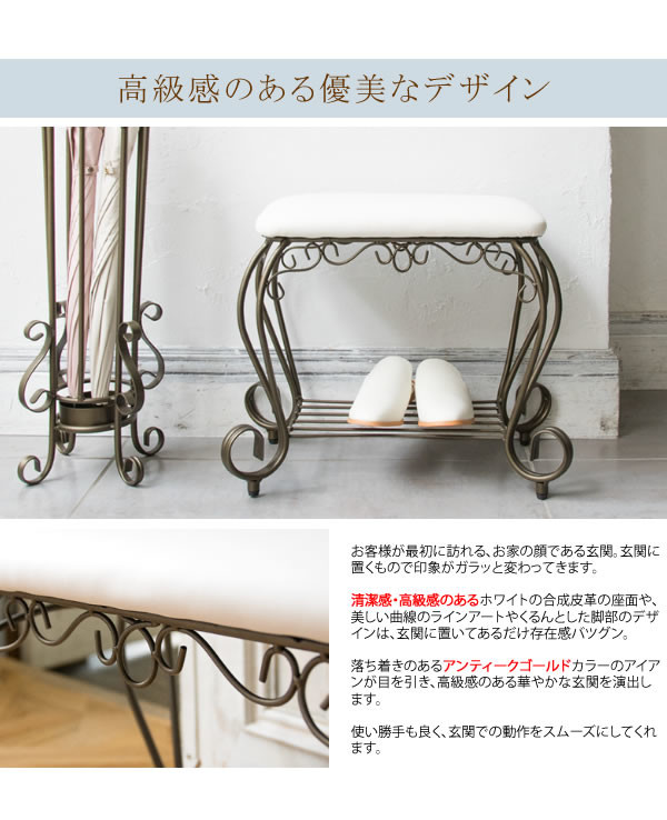 - 【実用性とデザイン性を兼ね備えたエントランスチェア】:アンティークゴールドのフレームが高級感を演出し、クラシックなデザインがどんなインテリアにもマッチ。PU合成皮革の座面は汚れに強く、快適な座り心地を提供します。