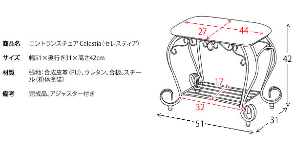 - 【玄関や寝室に最適なサイズ】:幅44cm×奥行27cmのコンパクトサイズで、玄関や寝室に優雅さをプラス。靴やスリッパを収納できる棚付きで、スペースを有効活用し、すっきりとした空間を保てます。