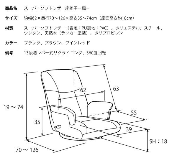 日本製13段階リクライニングレザー座椅子
