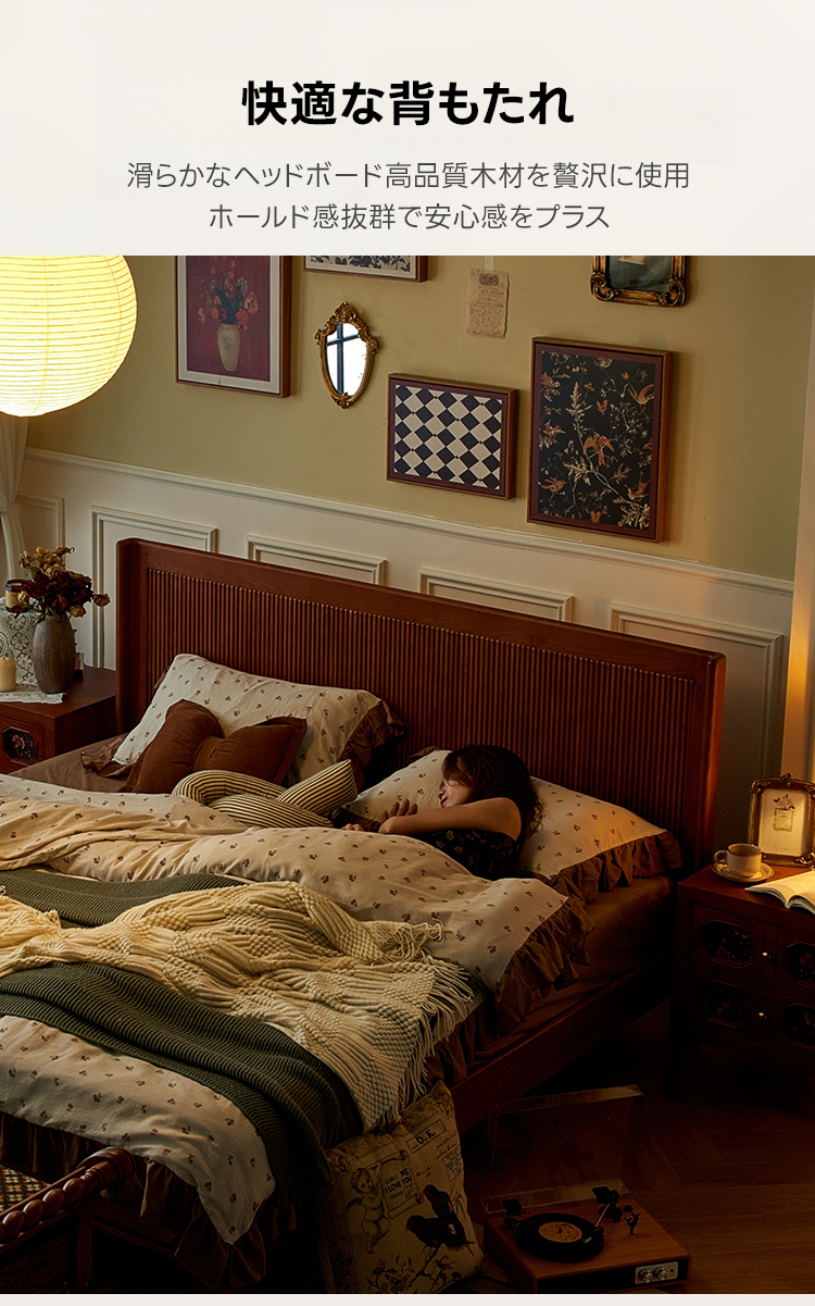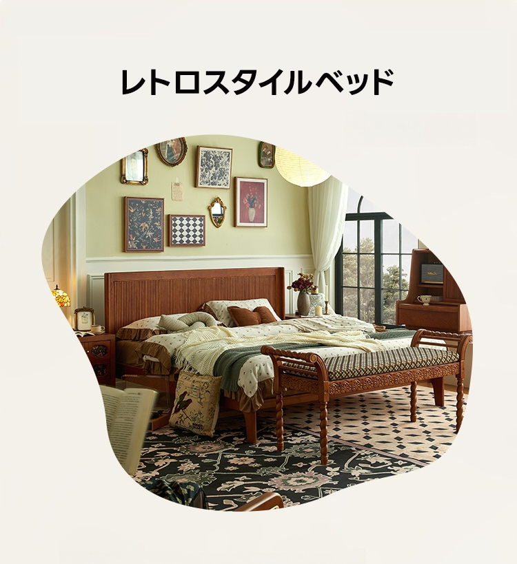 - 【優れたデザインと機能性】:レトロスタイルベッドは、クラシックなデザインと高品質な素材を組み合わせた一品です。リブデザインのヘッドボードが立体感を与え、エレガントな雰囲気を寝室に演出します。