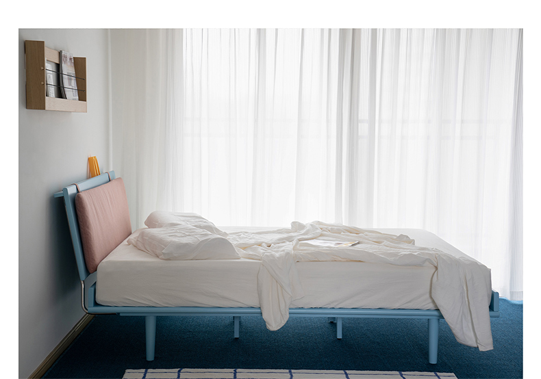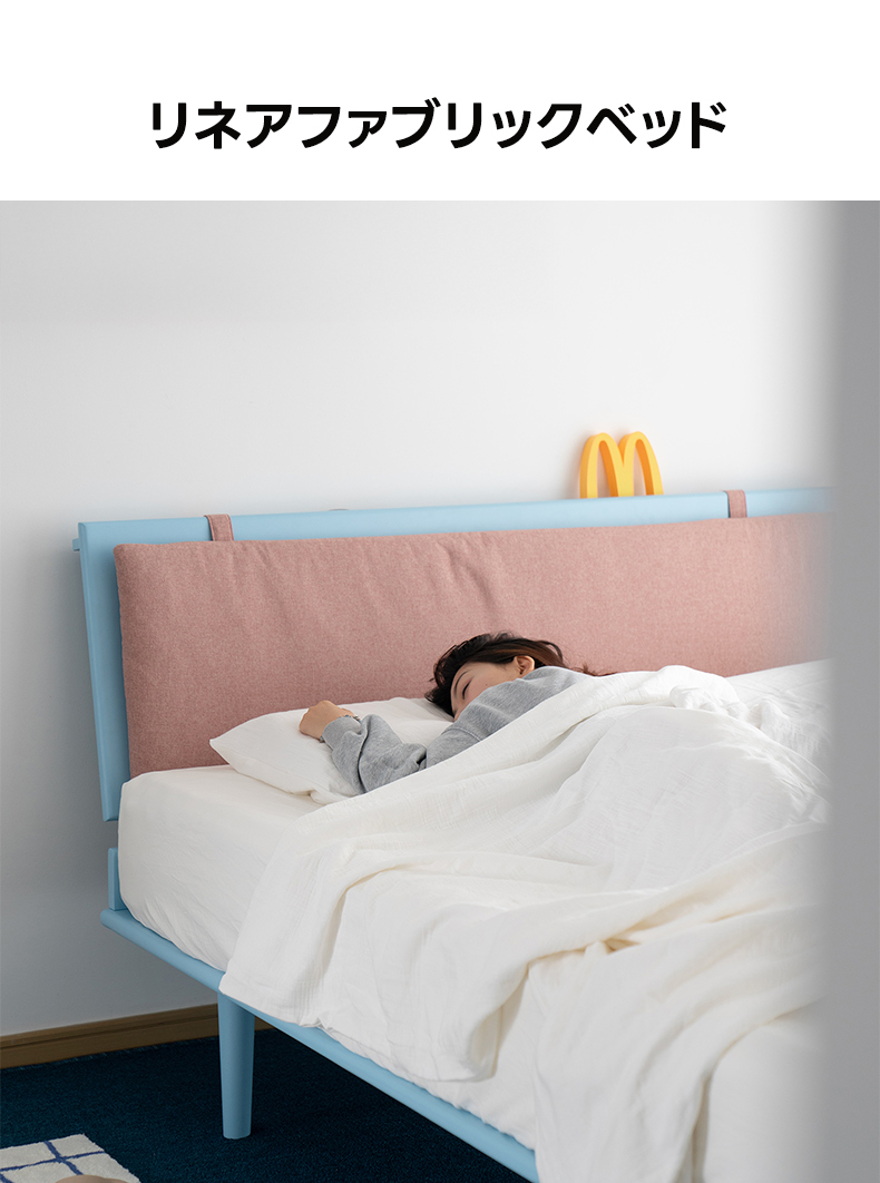 - 【シンプルでスタイリッシュなデザイン】:リネアファブリックベッドは、シンプルでありながらスタイリッシュなデザインが特徴です。カラフルなブルーのフレームが寝室を明るく華やかに演出し、どのようなインテリアにもマッチします。