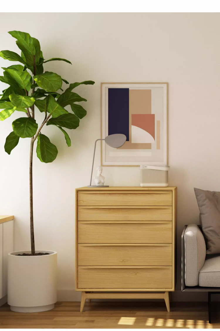 天然木シンプルモダン5段チェスト