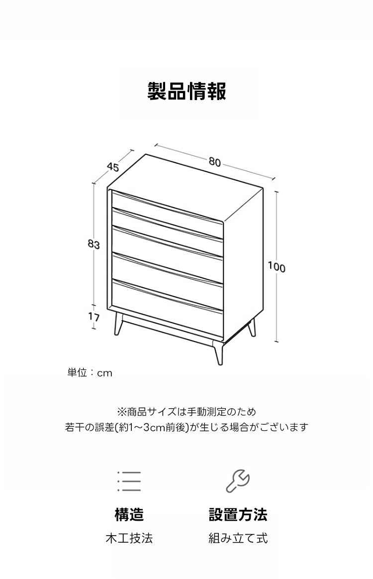 • 【安心のアフターサービス】高品質な素材と優れたデザインを誇るこのチェストは、長くご使用いただける耐久性を備えています。安心してお使いいただけるよう、充実したアフターサービスを提供します。