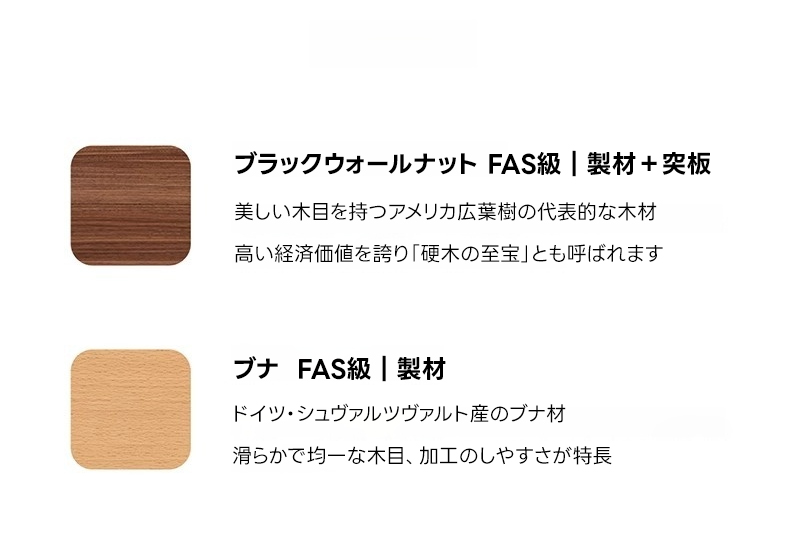 - 【高品質な素材とデザイン】ブラックウォールナットとブナのFAS級素材を使用し、美しい木目と滑らかな仕上げが特徴。耐久性に優れた設計で長くお使いいただけます。
