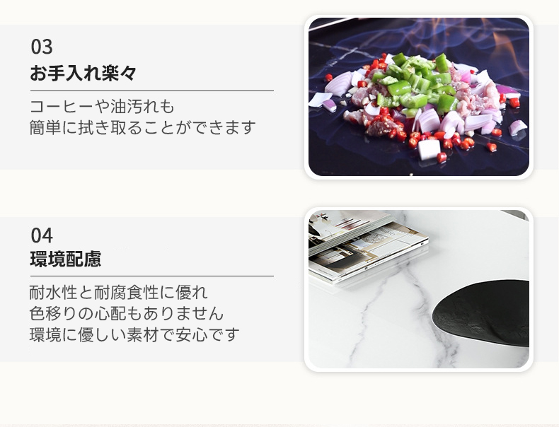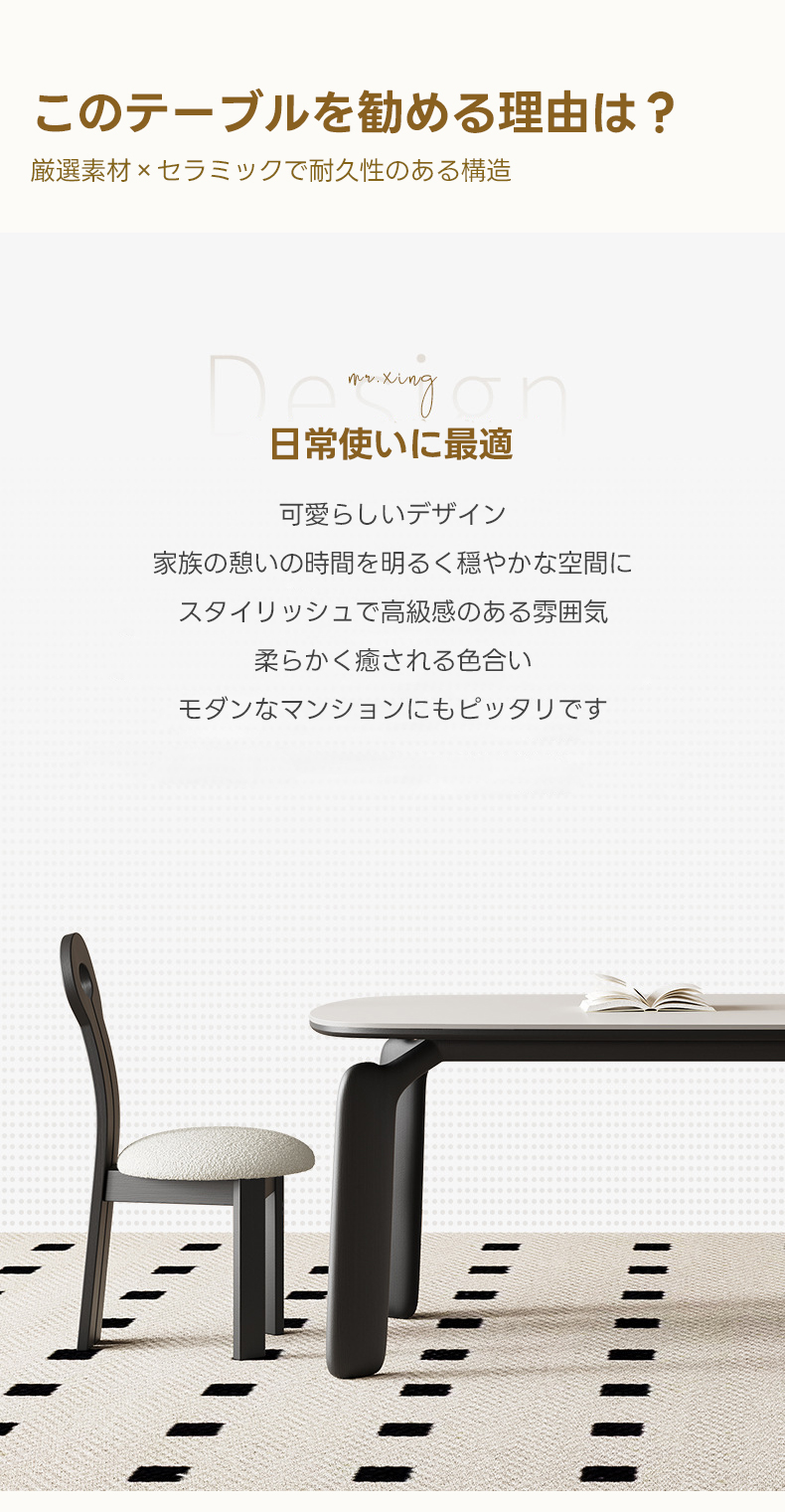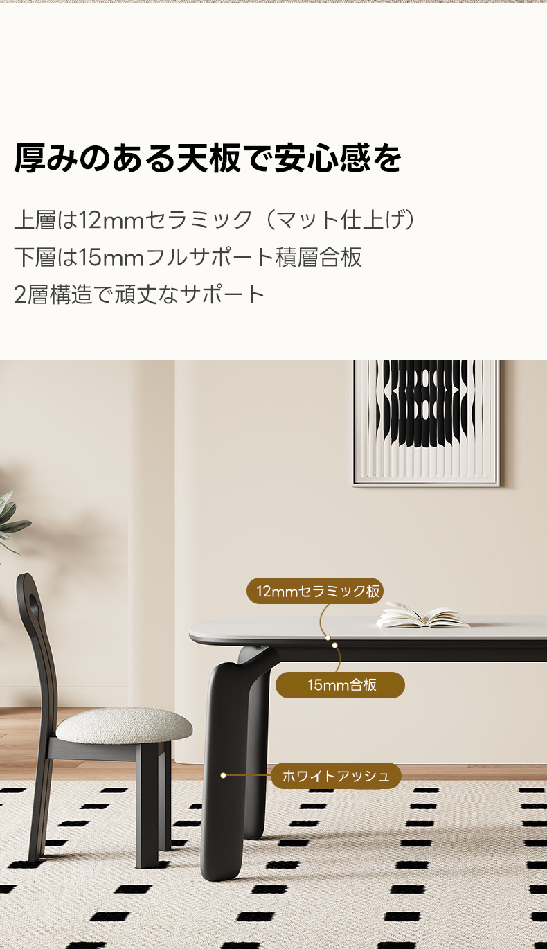 • 【高品質な素材と洗練されたデザイン】セラミックの天板はマットな仕上げで高級感を演出し、簡単にお手入れが可能です。ホワイトアッシュの脚は耐久性と安定性を兼ね備えており、長期間安心してご使用いただけます。環境に優しい素材を使用しているため、安心してお使いいただけます。
