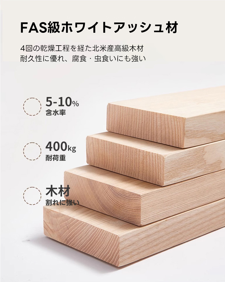 - 【高品質な素材と洗練されたデザイン】:北米FAS級のアッシュ材を使用し、美しい木目と高い耐荷重性を誇ります。北欧風のシンプルで洗練されたデザインは、どんなインテリアにも調和します。