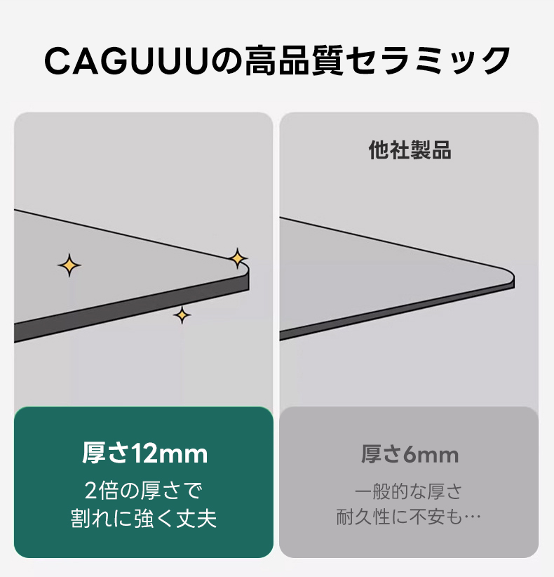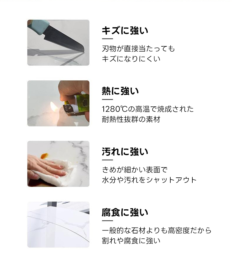 - 【優れた耐久性と機能性】:セラミック製の天板は、耐熱性、耐摩耗性、防水性、耐腐食性に優れ、日常の使用に最適です。厚さ12mmのセラミックと18mmのサポート板により、頑丈で安定感があります。