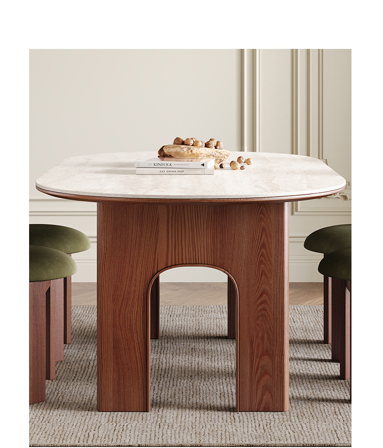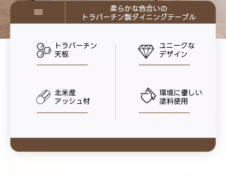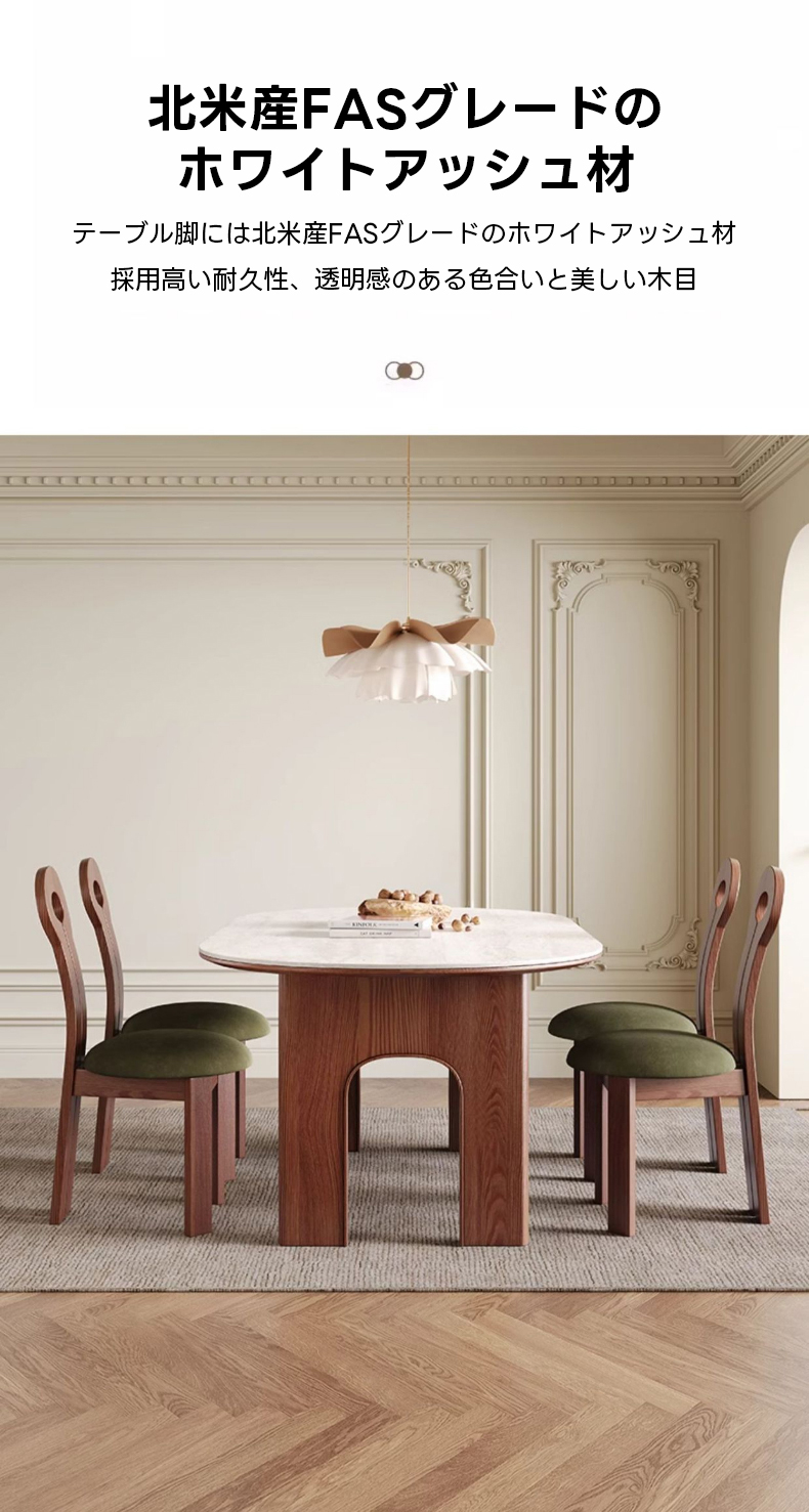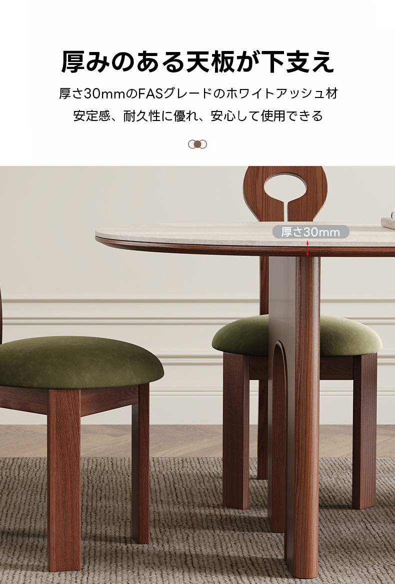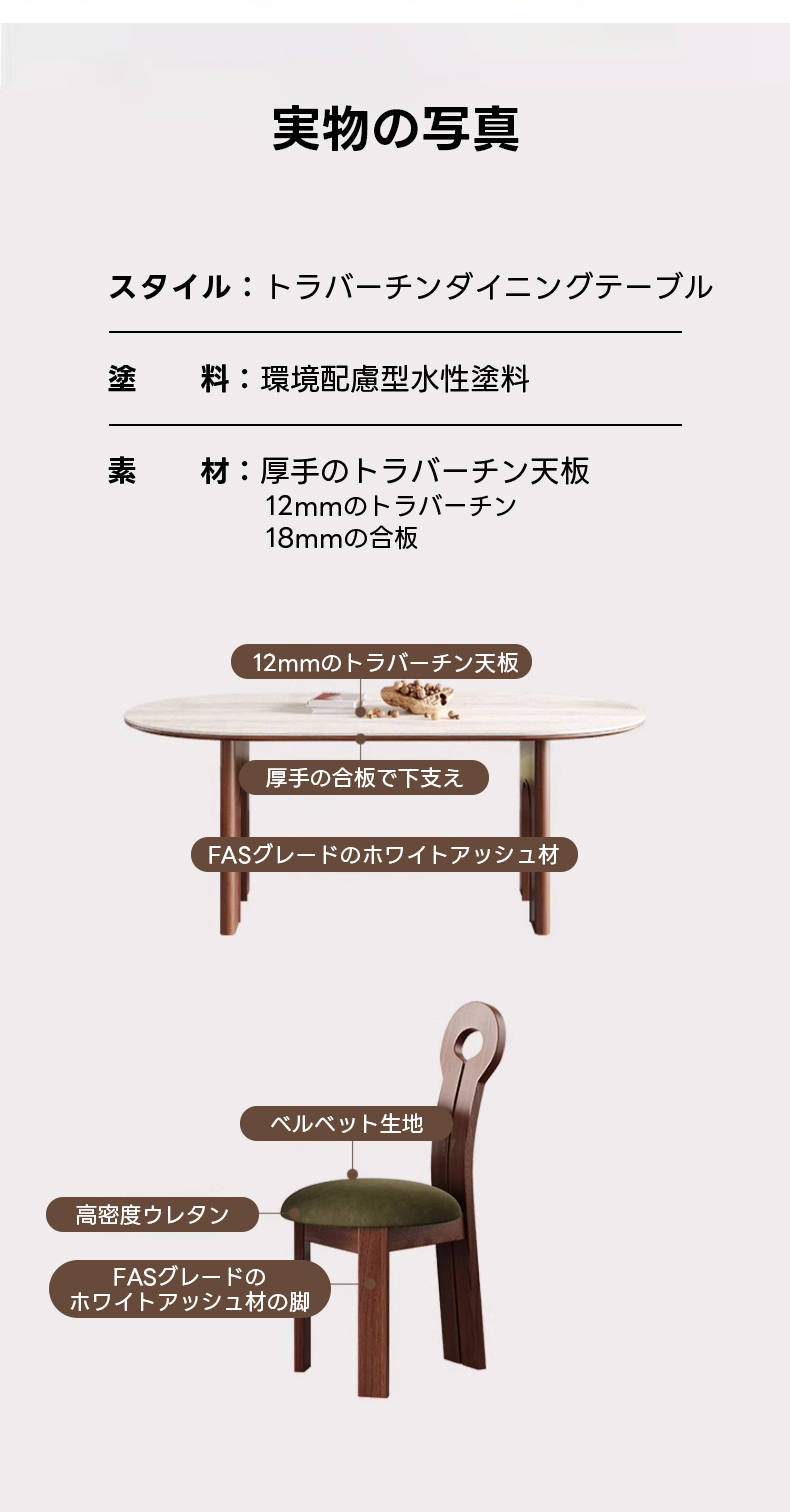 - 【高品質な素材と設計】:天板にはイタリア製トラバーチンを使用し、脚部には北米産アッシュ材を採用。ダブルアーチ構造で安定感と耐荷重性を強化し、長くご愛用いただけます。