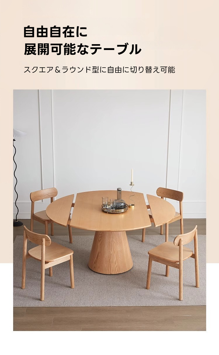 - 【多機能エクステンション】:このダイニングテーブルはスライド式のエクステンション機能を備え、通常は4〜6人掛けですが、拡張すると6〜10人掛けに対応可能。大人数の集まりや特別なイベントにも最適な選択です。
