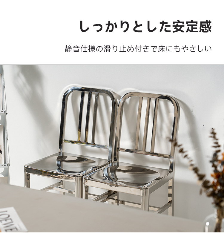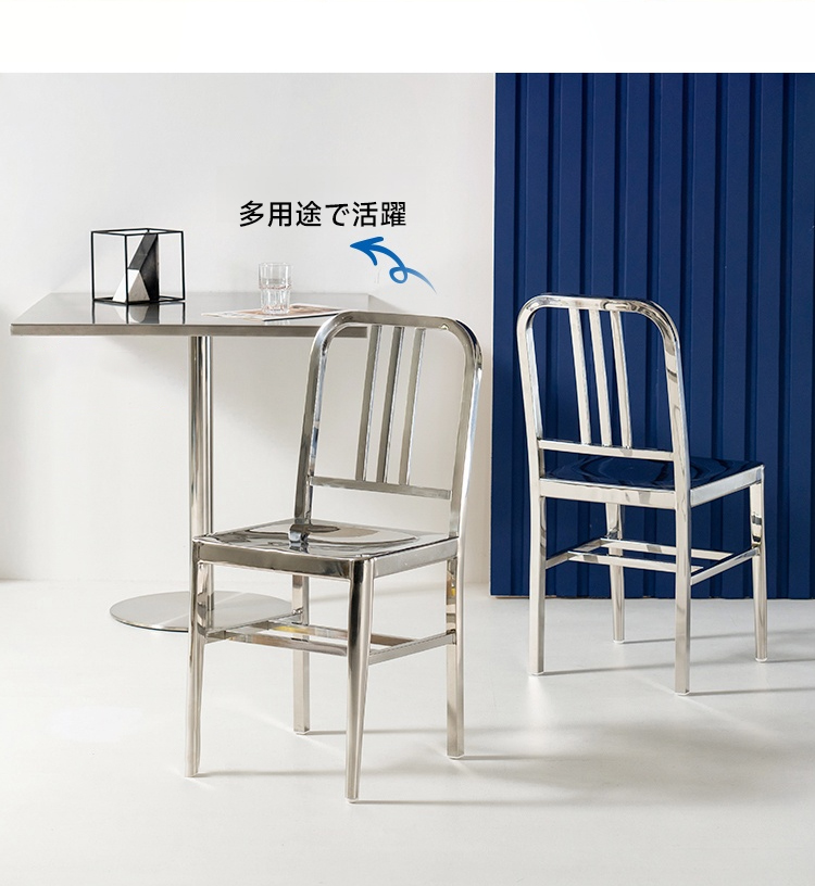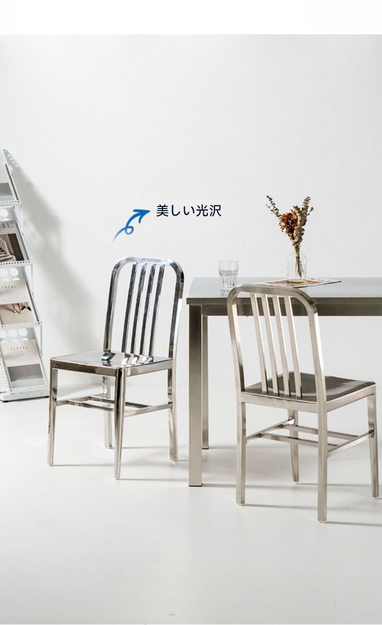 - 【高品質ステンレス製で耐久性抜群】このダイニングチェアは、錆びにくい高品質ステンレス素材を使用しており、長期間にわたってその美しい光沢を保ちます。インダストリアルなデザインが特徴で、どんなインテリアにも自然に溶け込みます。