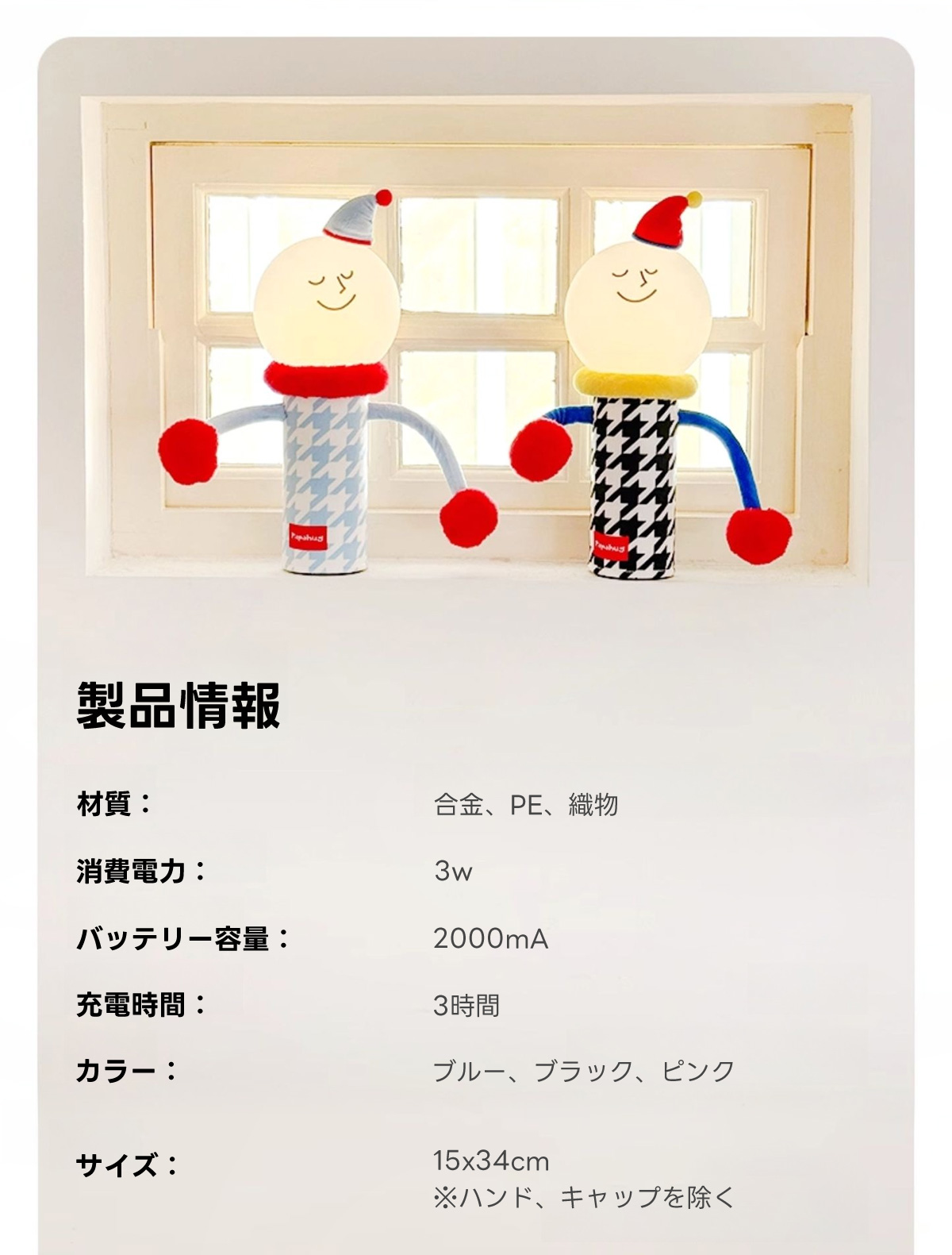 - 【耐久性と安全性を兼ね備えた素材】:スマイルバディライトは、繊維、PE、合金を使用しており、耐久性と安全性を兼ね備えています。LED光源は交換不可ですが、約3000時間の使用が可能で、長期間にわたり安心してご使用いただけます。